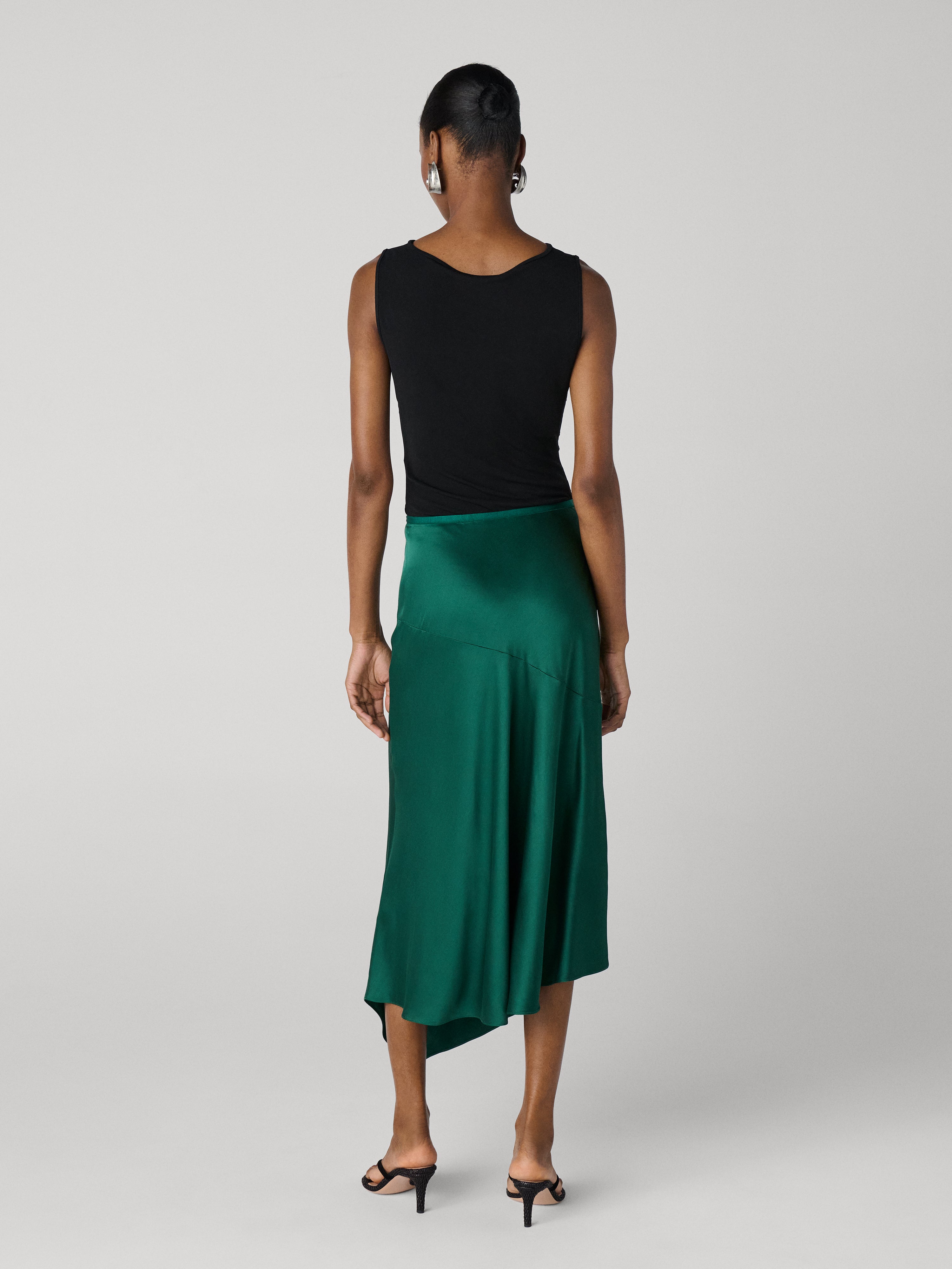 Crafted from our luxe stretch satin, the Amalie Skirt features a bold evergreen hue and pairs perfectly with the Adela or Estella Top.