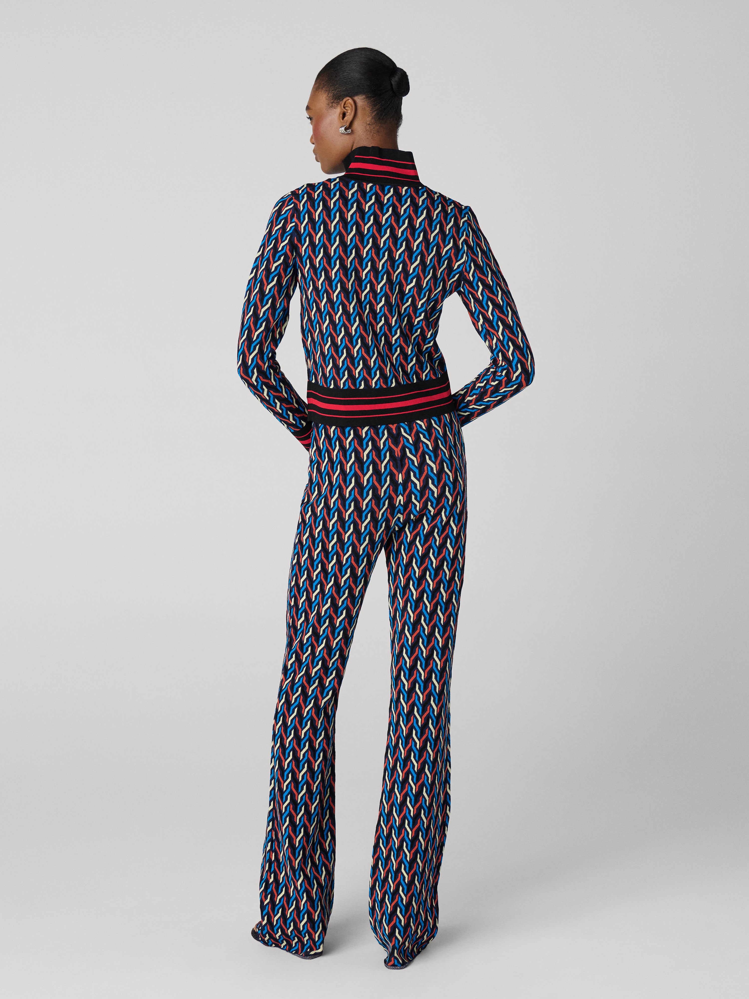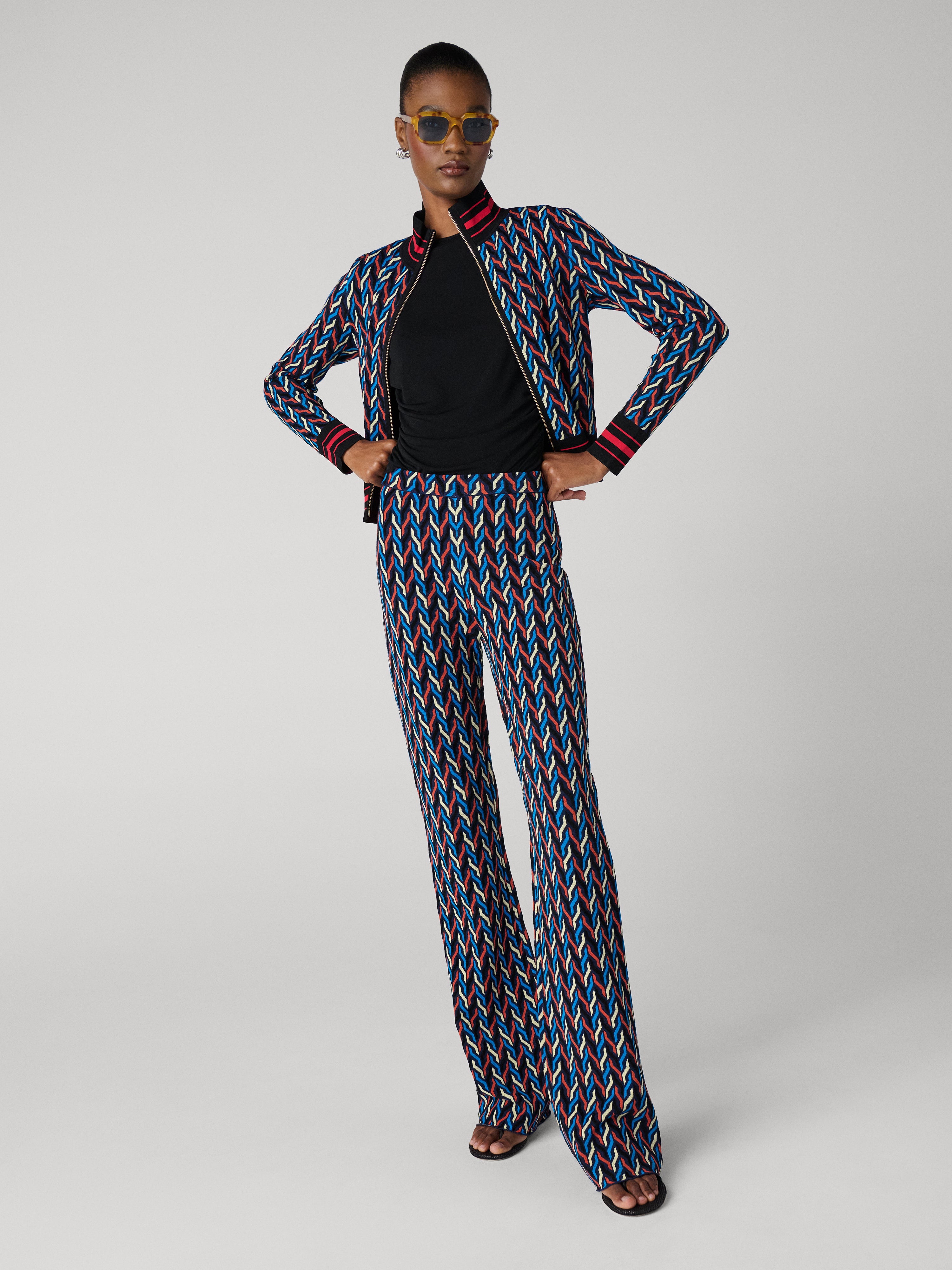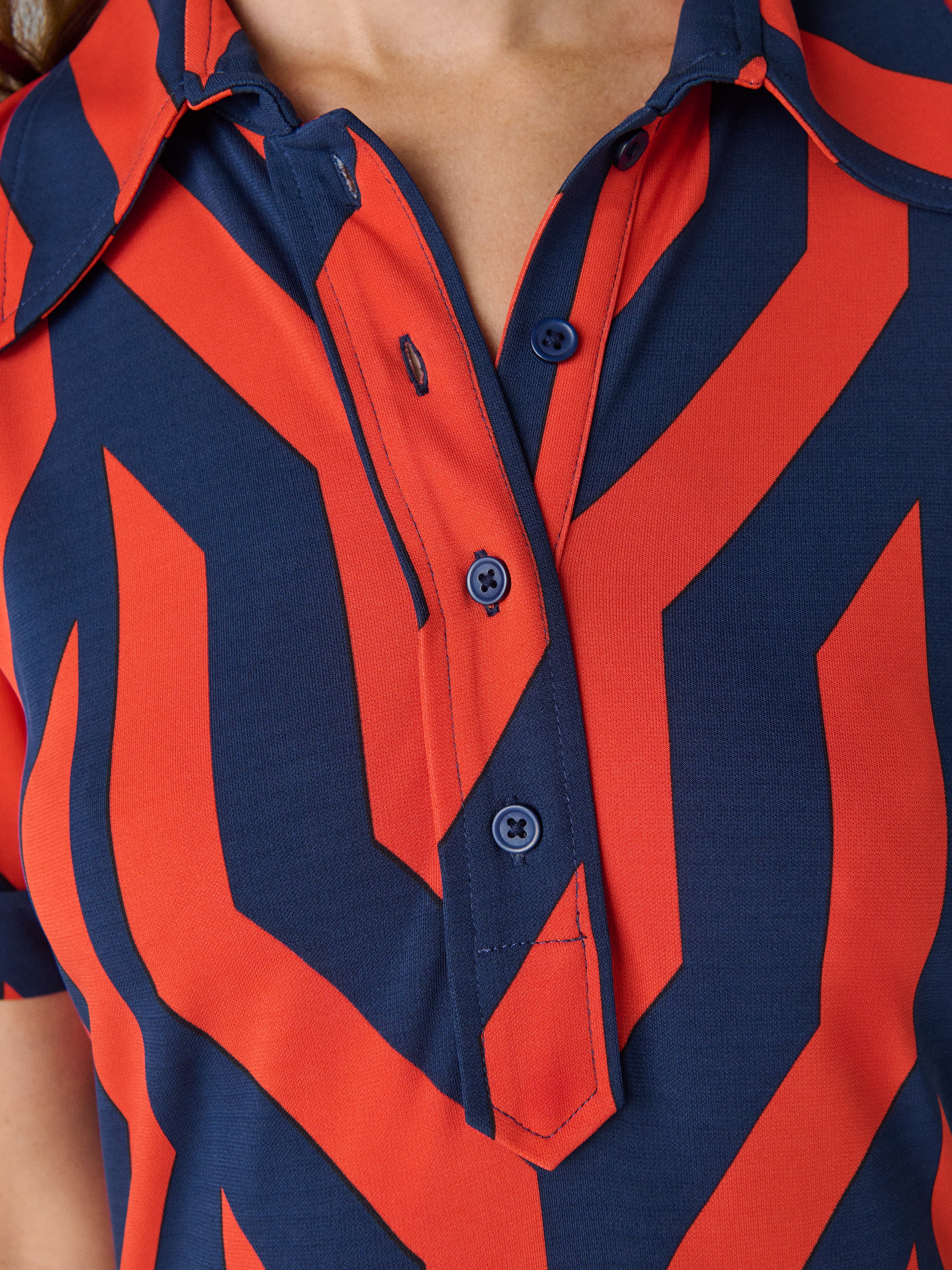 The Zaria Dress is occasion-ready featuring a graphic geometric print, and a sleek, elongated fit.