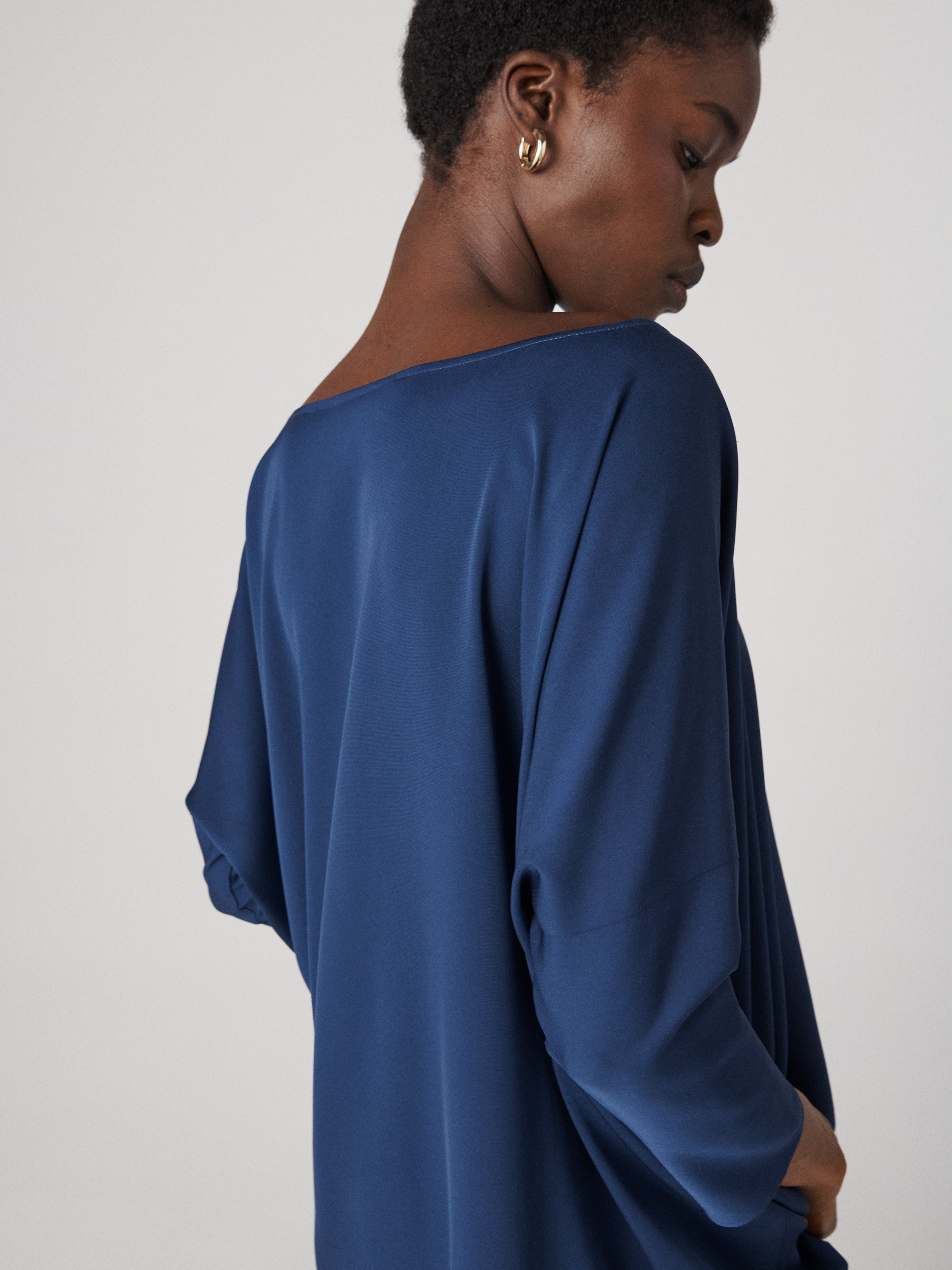 - Three-quarter batwing style sleeves