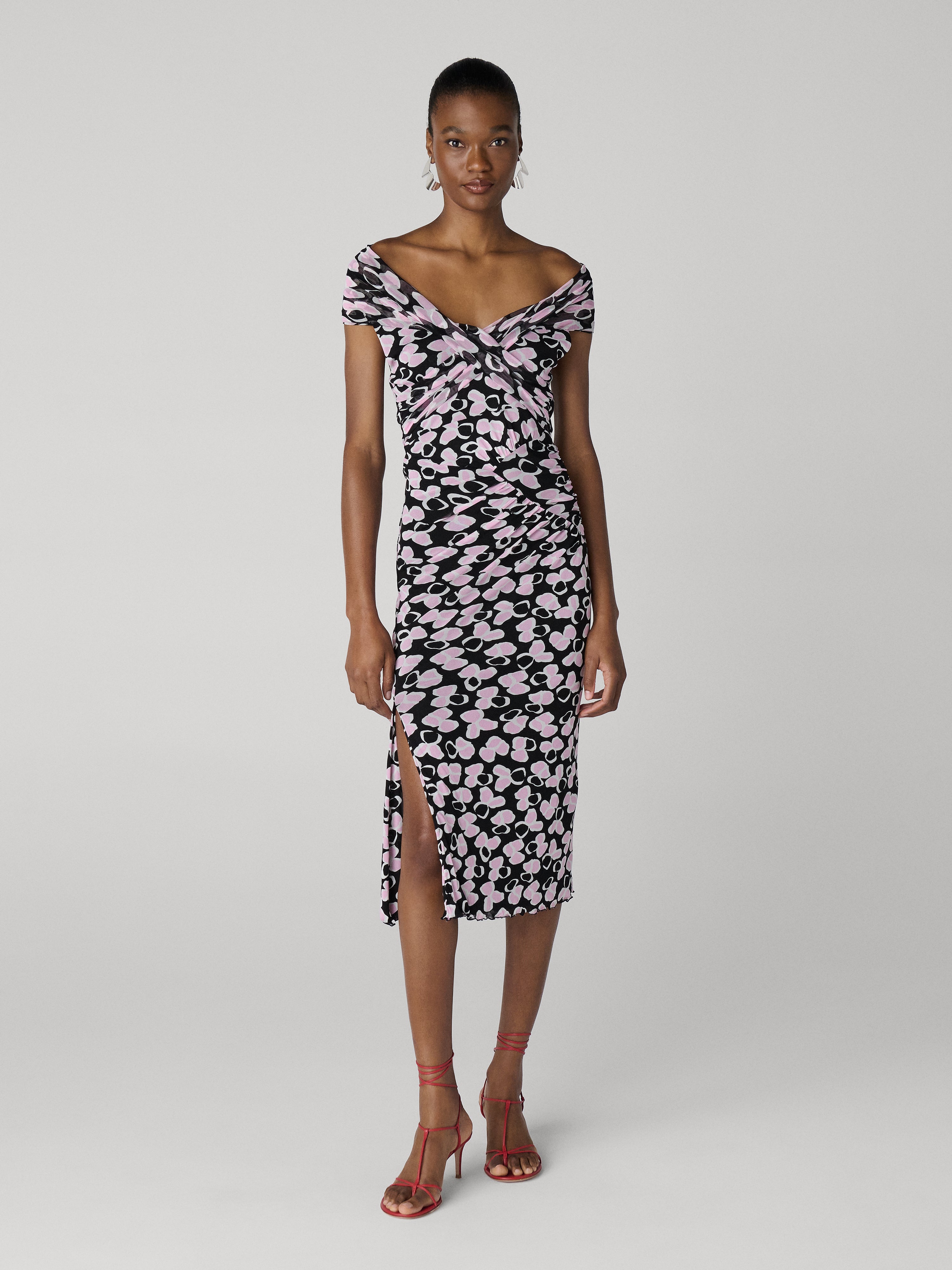 The Lovinia dress is soft, stretchy, and fitted, cut from our signature mesh.