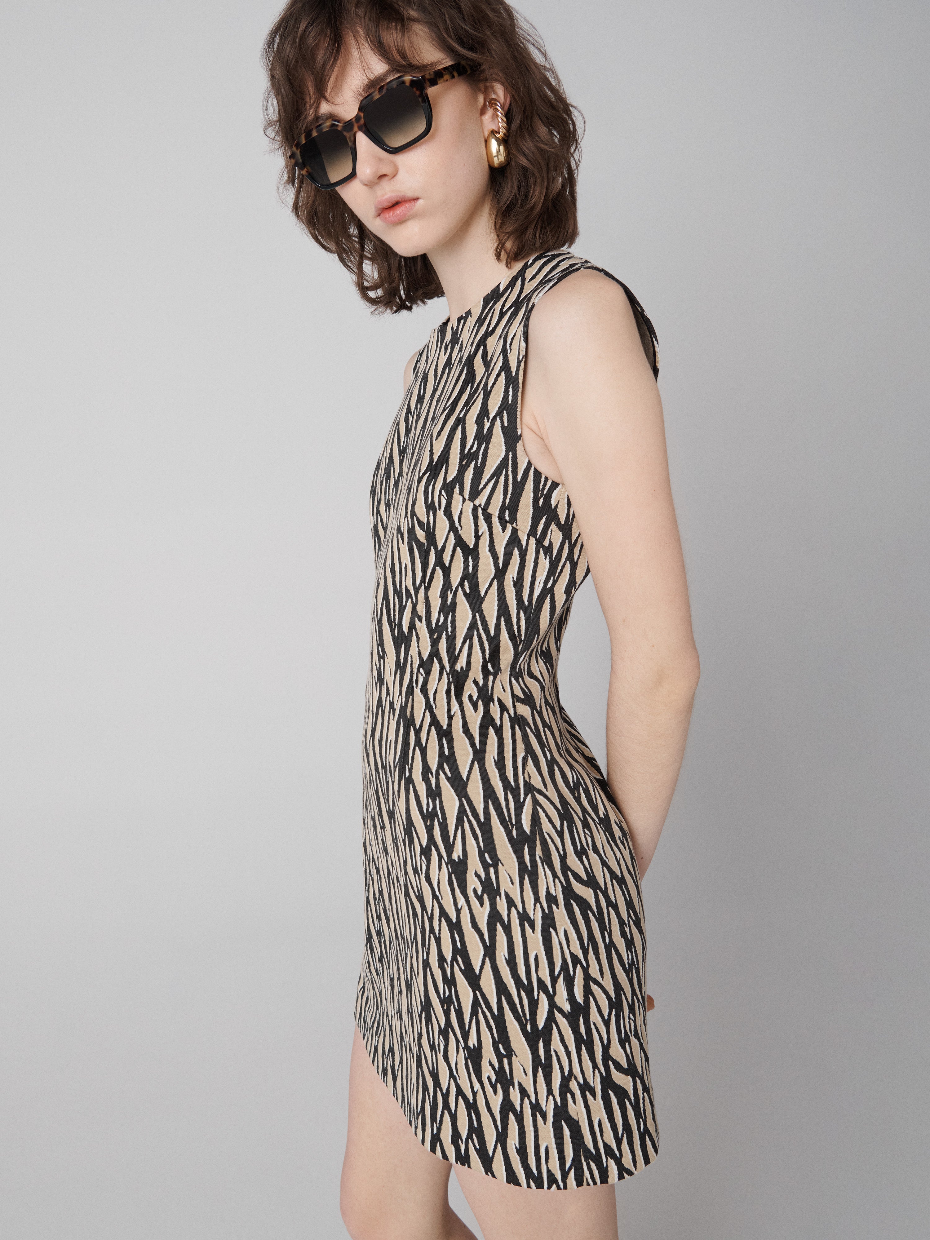 The Ruby knit jacquard mini dress is a fitted silhouette with a textured, luxurious feel.