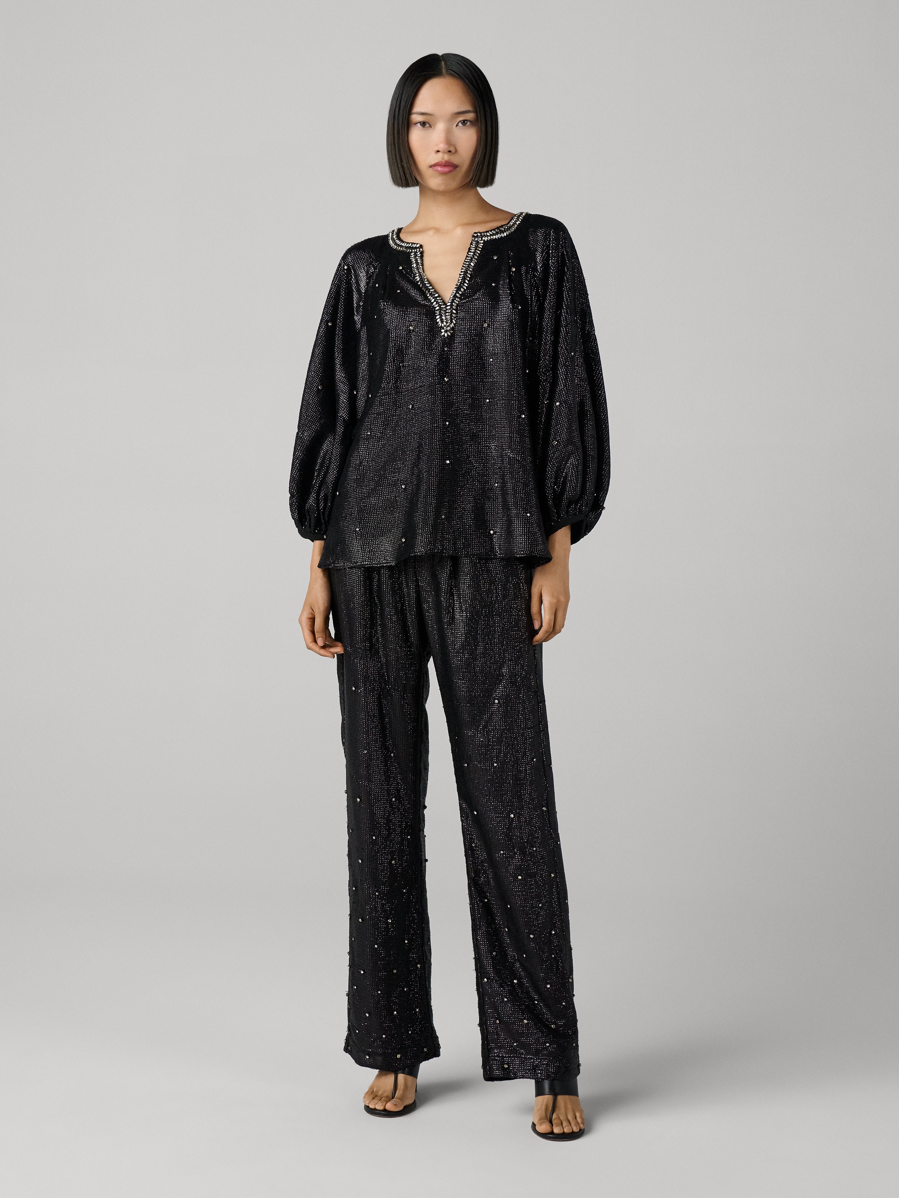 Make a statement in the Elton Trousers, featuring show-stopping all-over embellishments.