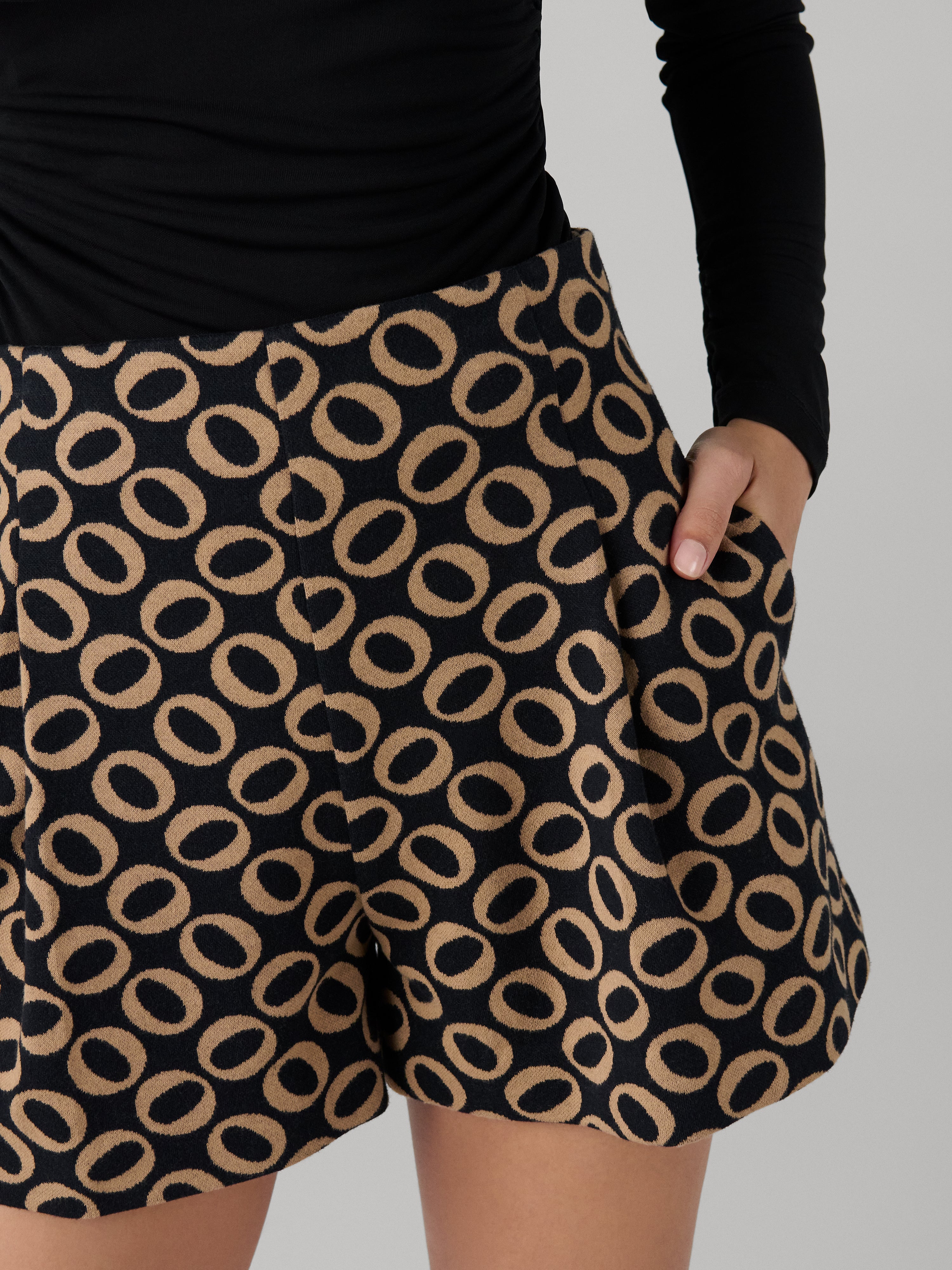 A knit detailed with woven prints that give it a textured feel and an elevated look.