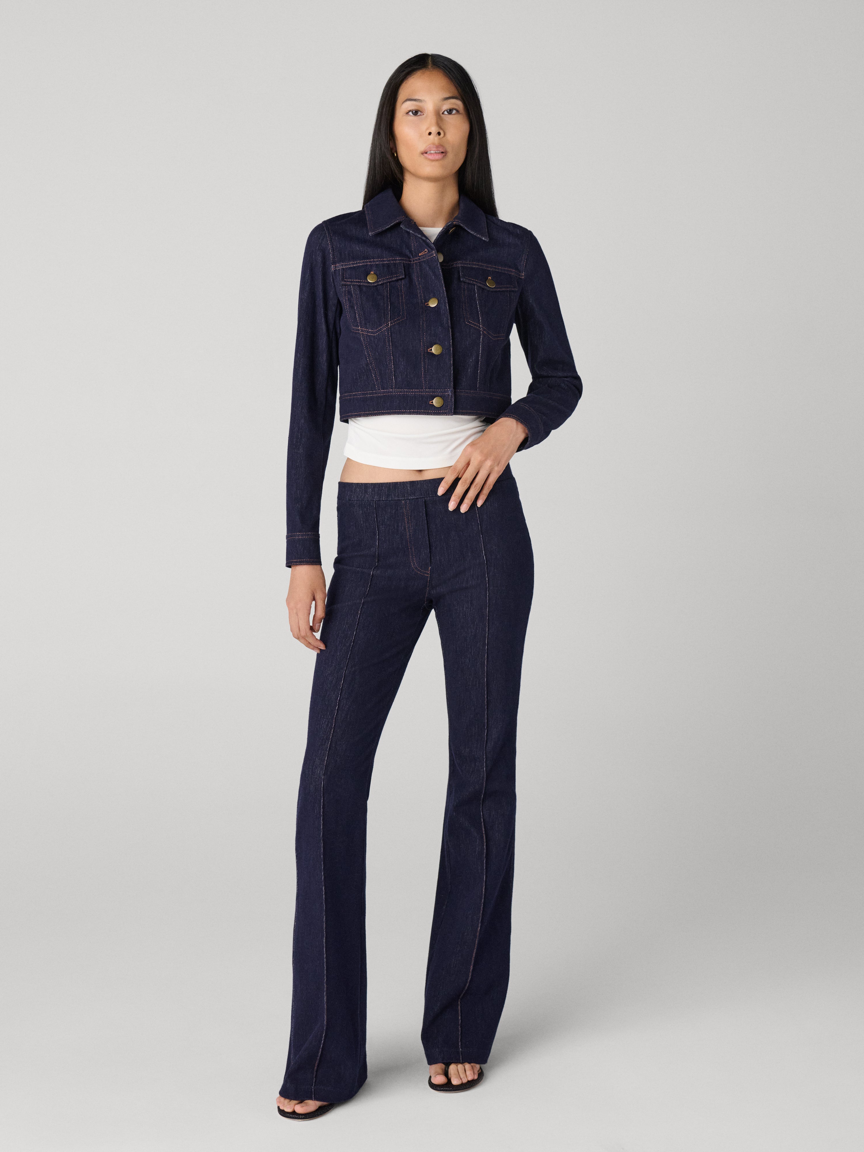 Introducing the Lilith Jacket — crafted from light stretch denim and tailored for a structured fit, it effortlessly transitions from dress to blazer.