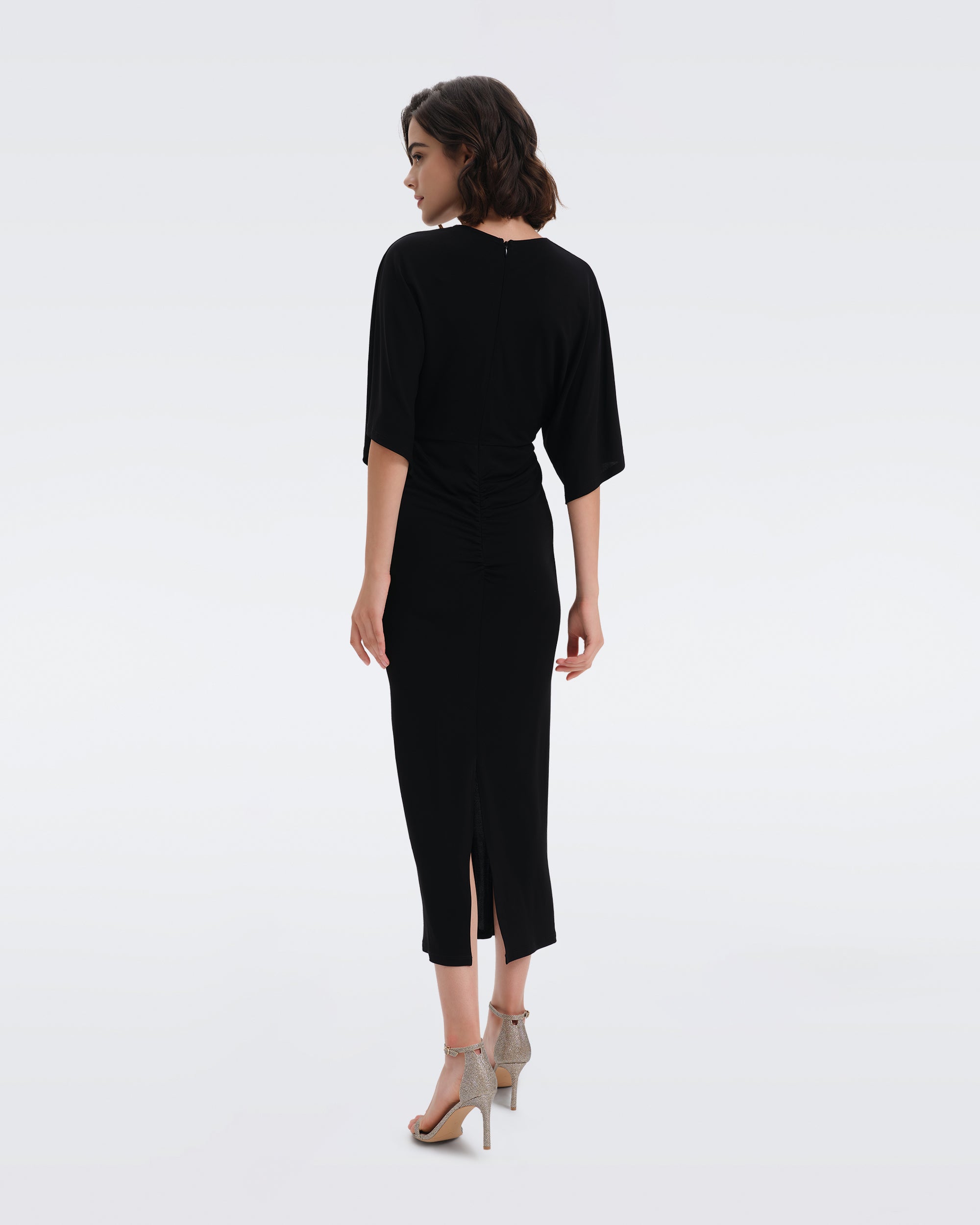 Sleek and simple. The Valerie has wide relaxed sleeves, balanced by a fitted silhouette that falls at the mid-calf.