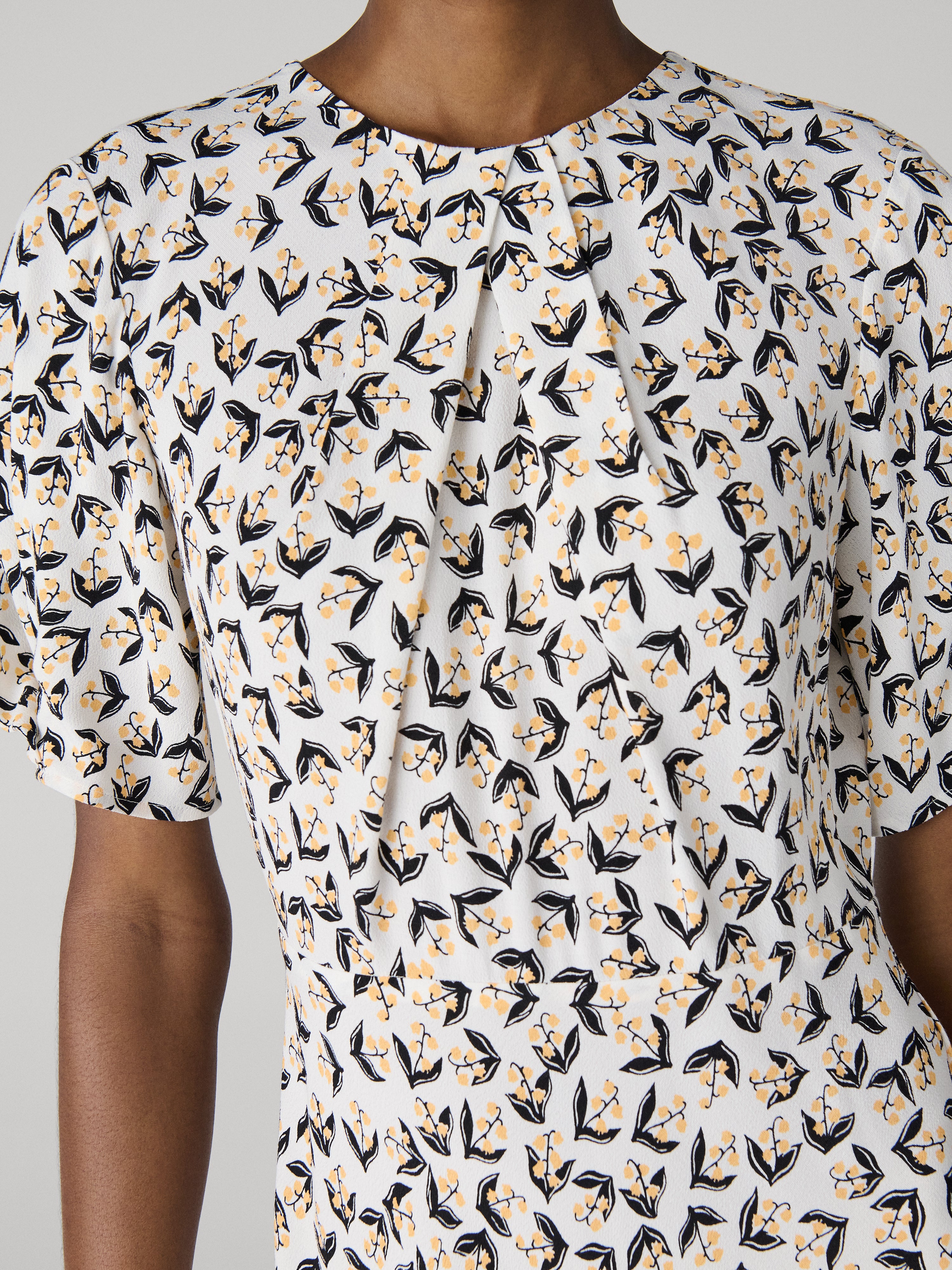 - Pleats around neckline & across bust