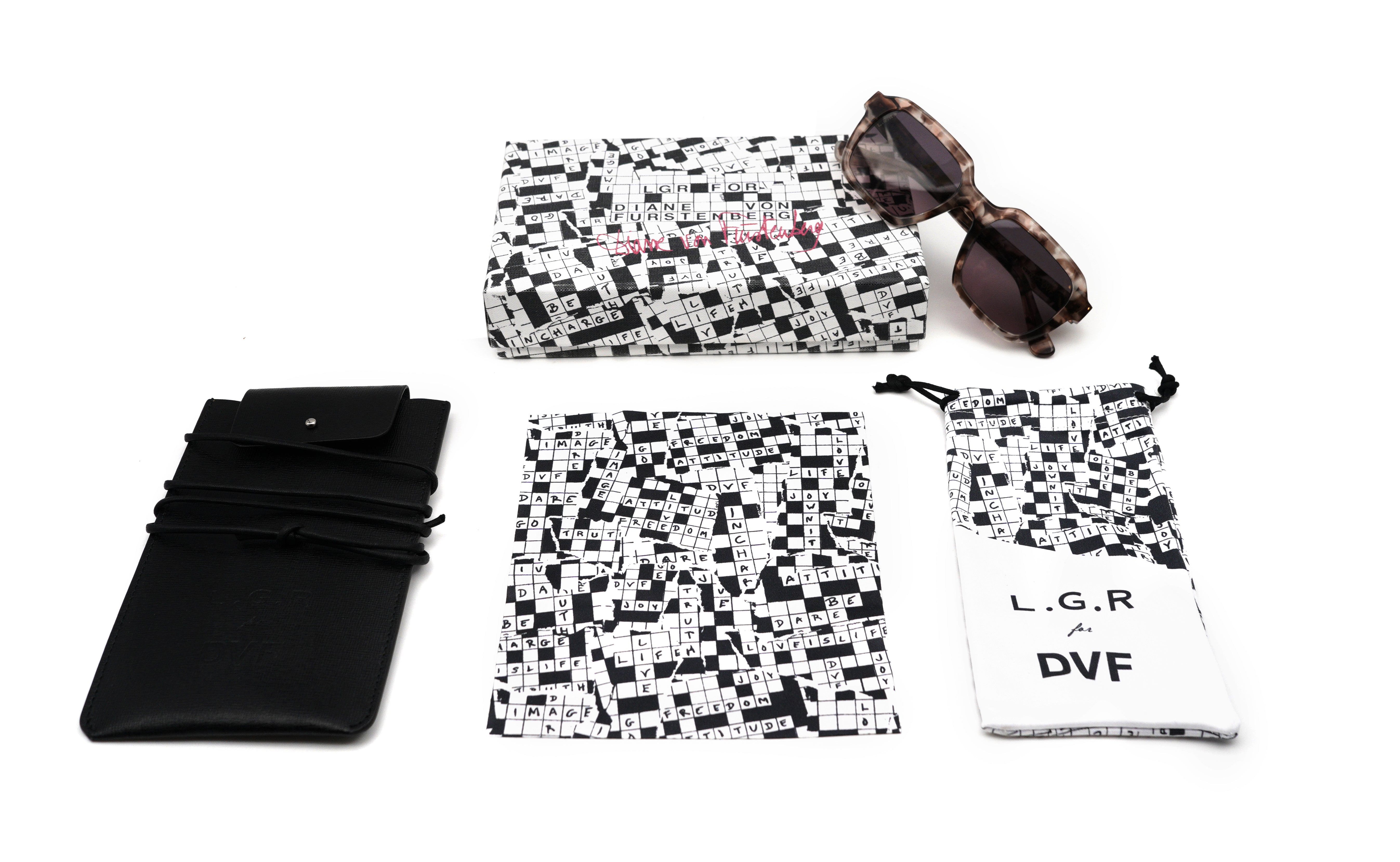 Diane von Furstenberg and L.G.R Founder Luca Gnecchi Ruscone have collaborated to design a limited-edition capsule with three new color combinations to L.GR's Rafaello sunglasses with customized packaging showcasing DVF's 50th-anniversary print.