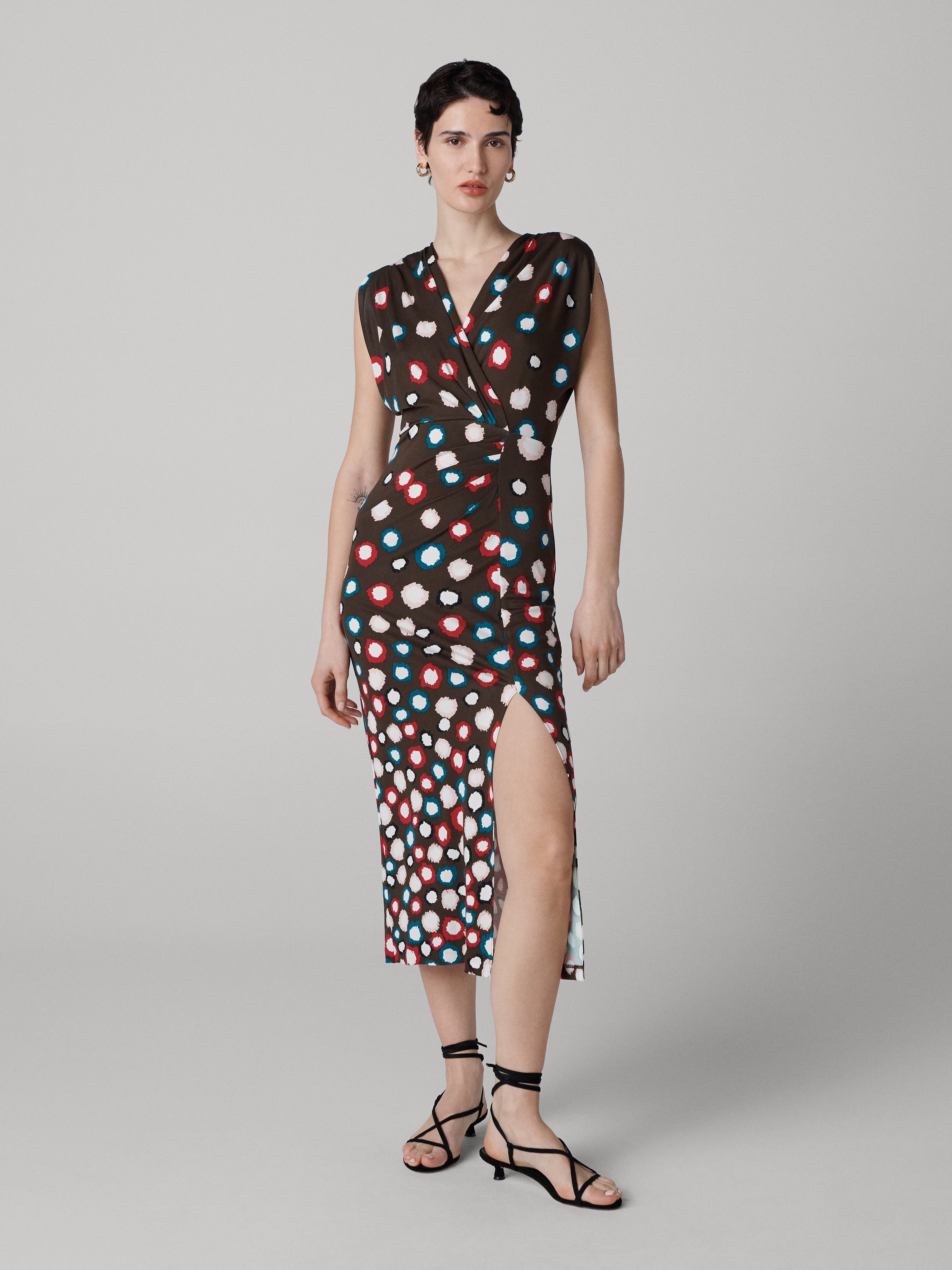 The striking Callie Dress delivers flirty drama with its bold print and sweeping maxi length — made to captivate.