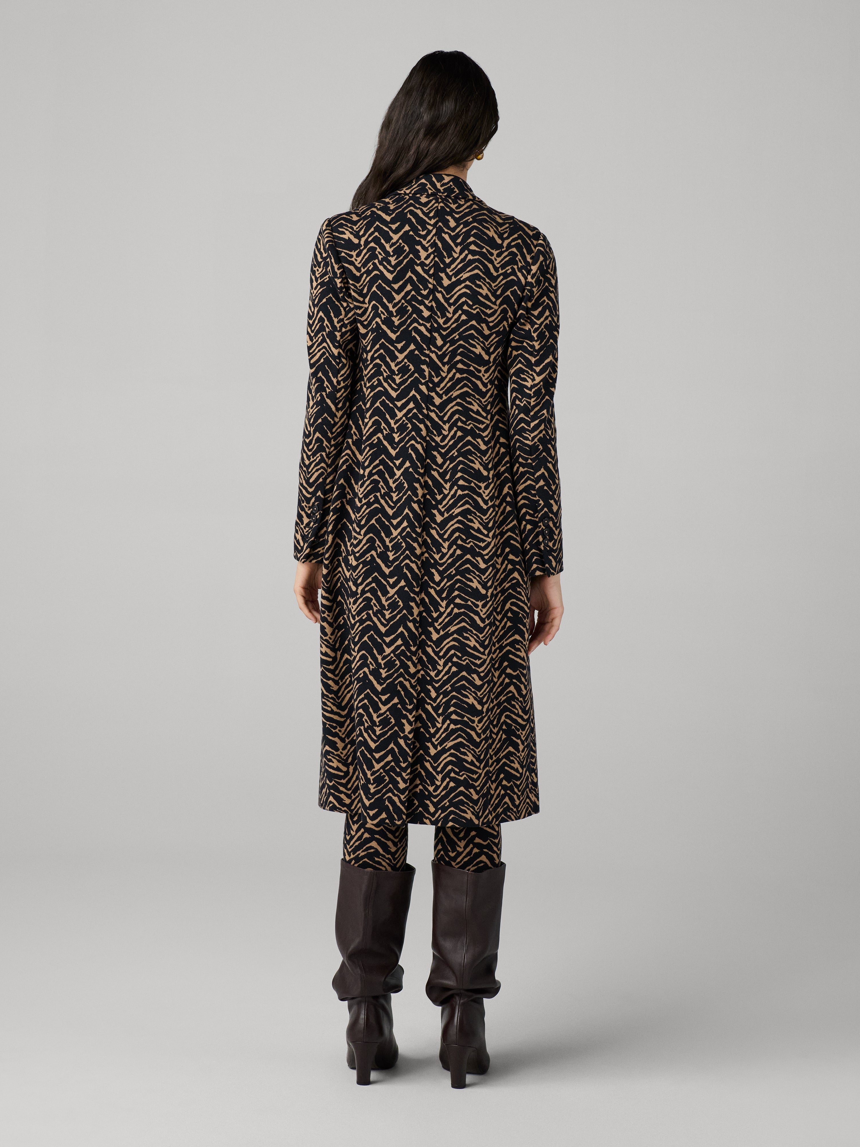 A knit detailed with woven prints that give it a textured feel and an elevated look.