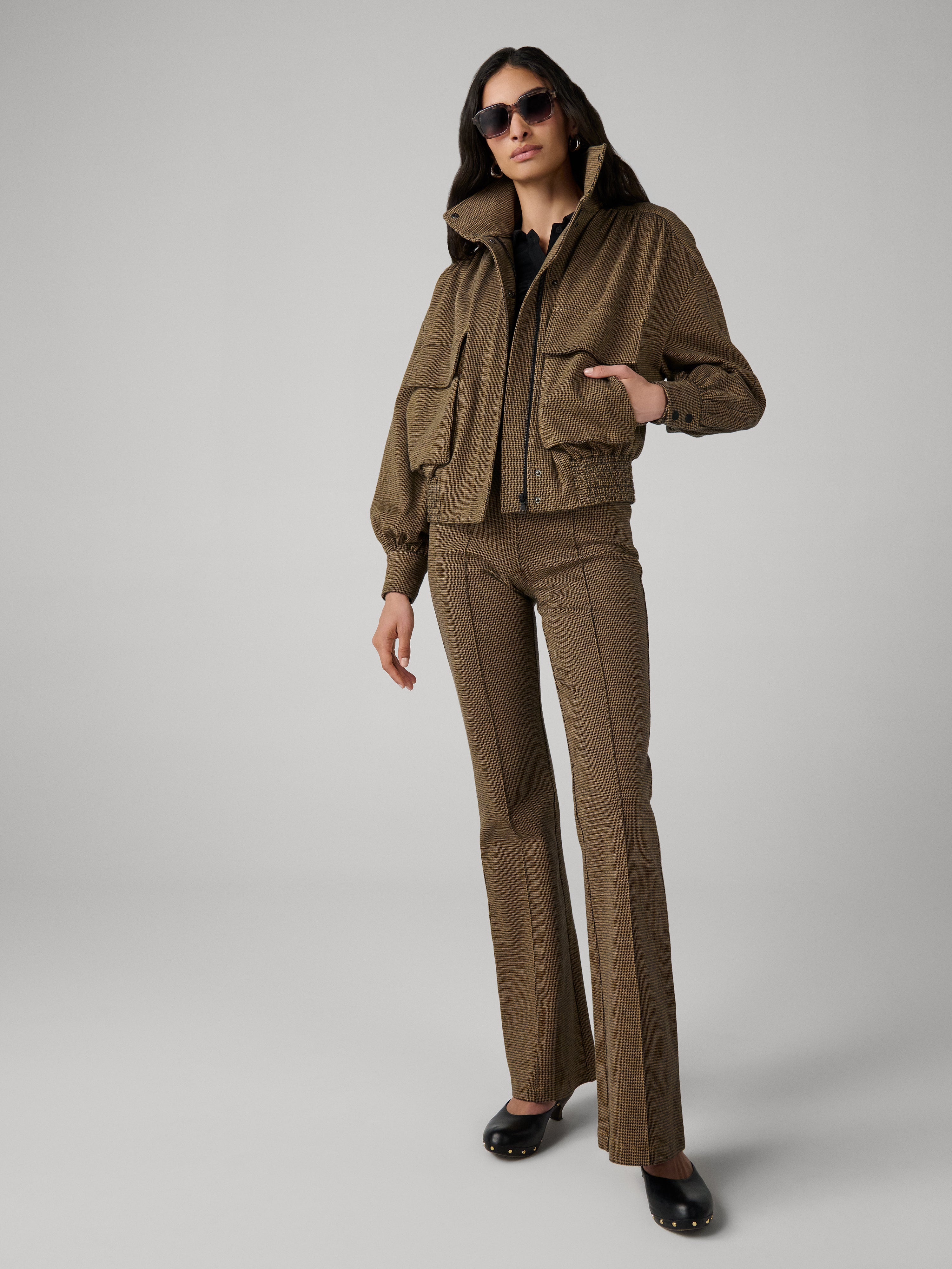 A structured knit detailed with a woven houndstooth print that gives it a textured feel and an edgy look.
