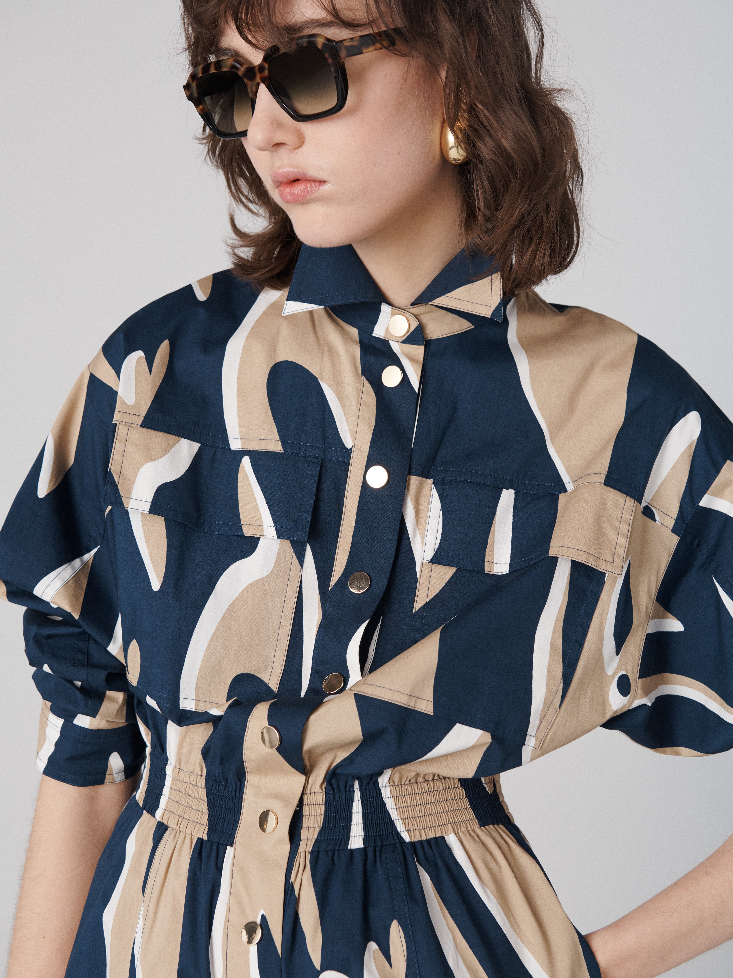 Stretch Cotton Poplin is a soft, light natural fabric that creates structured silhouettes with a hint of stretch for extra comfort.