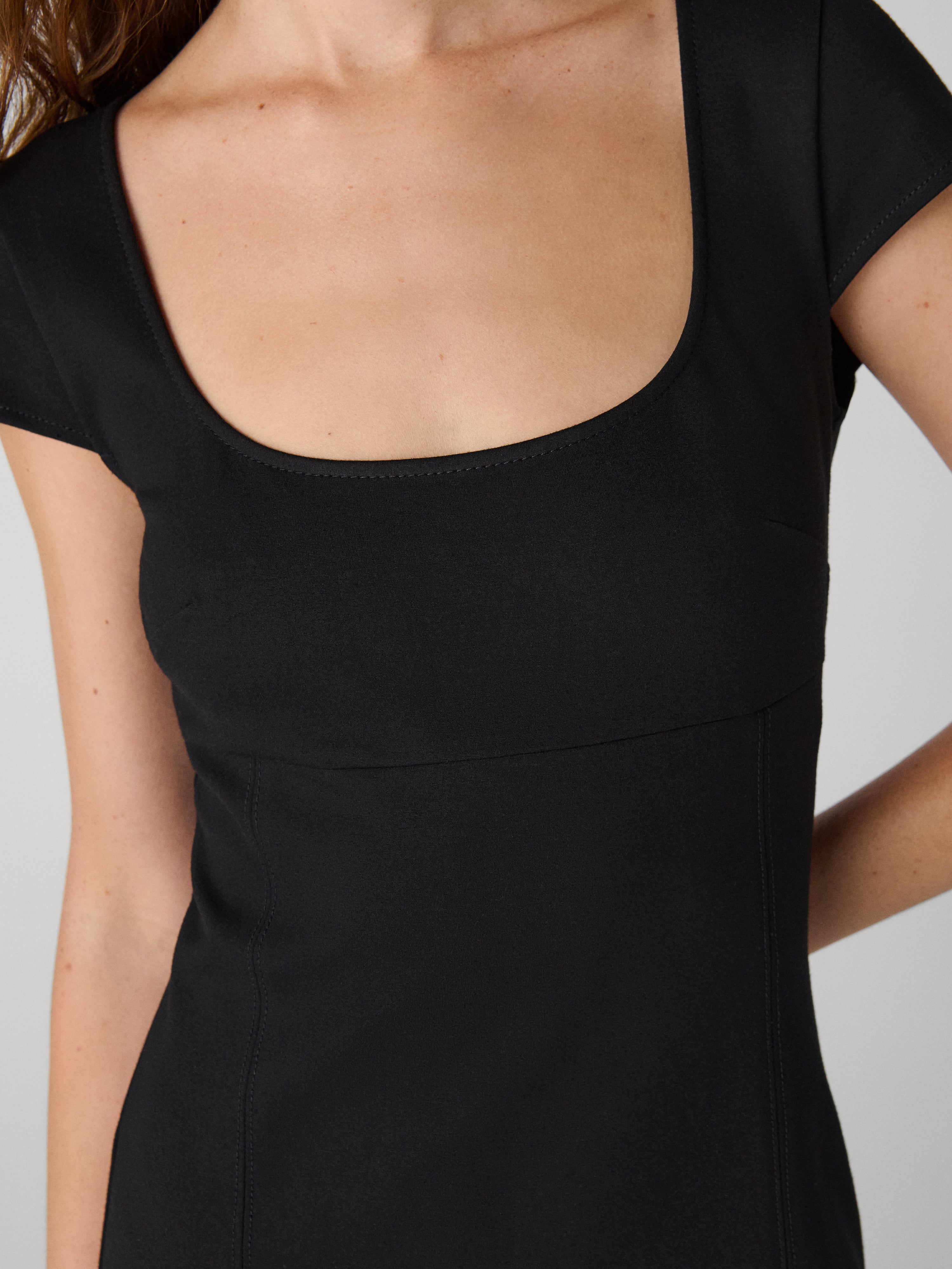 Our form-fitting Dani Dress is crafted from smoothing ponte fabric and features a flattering scoop neckline with charming cap sleeve details.