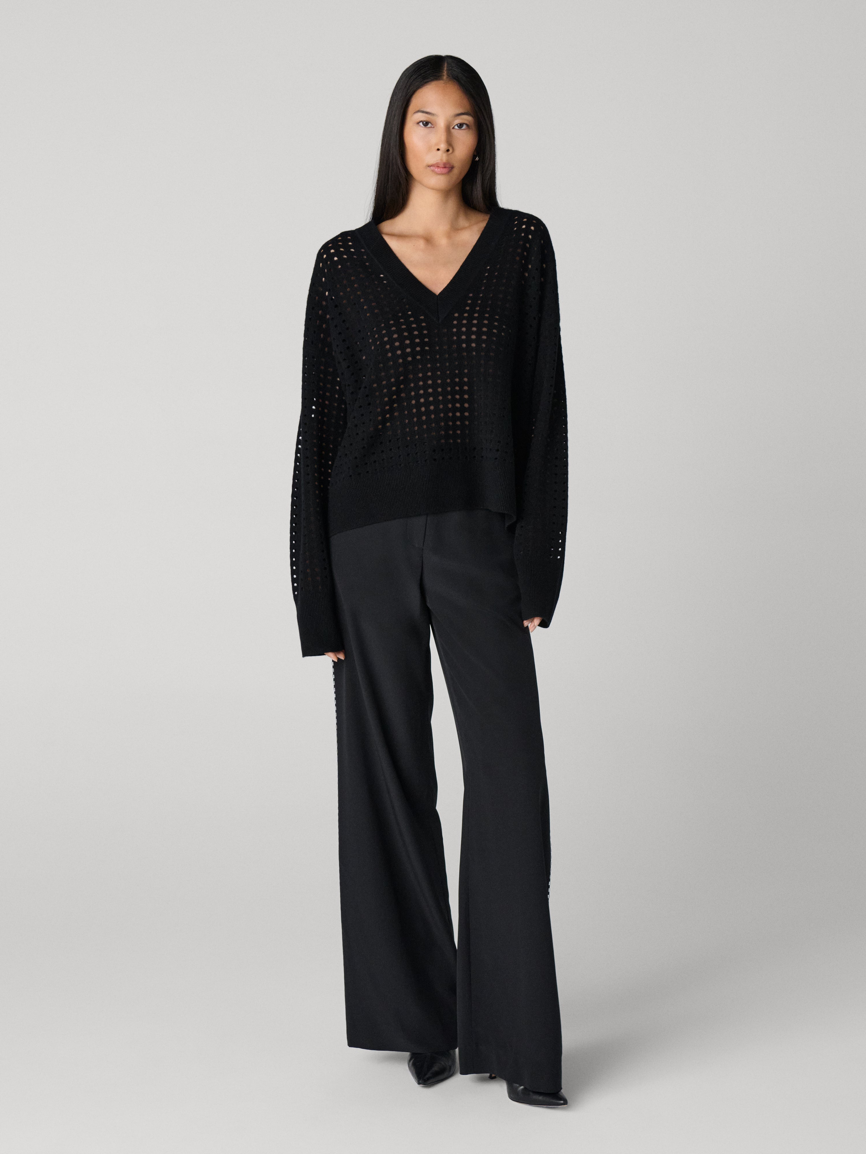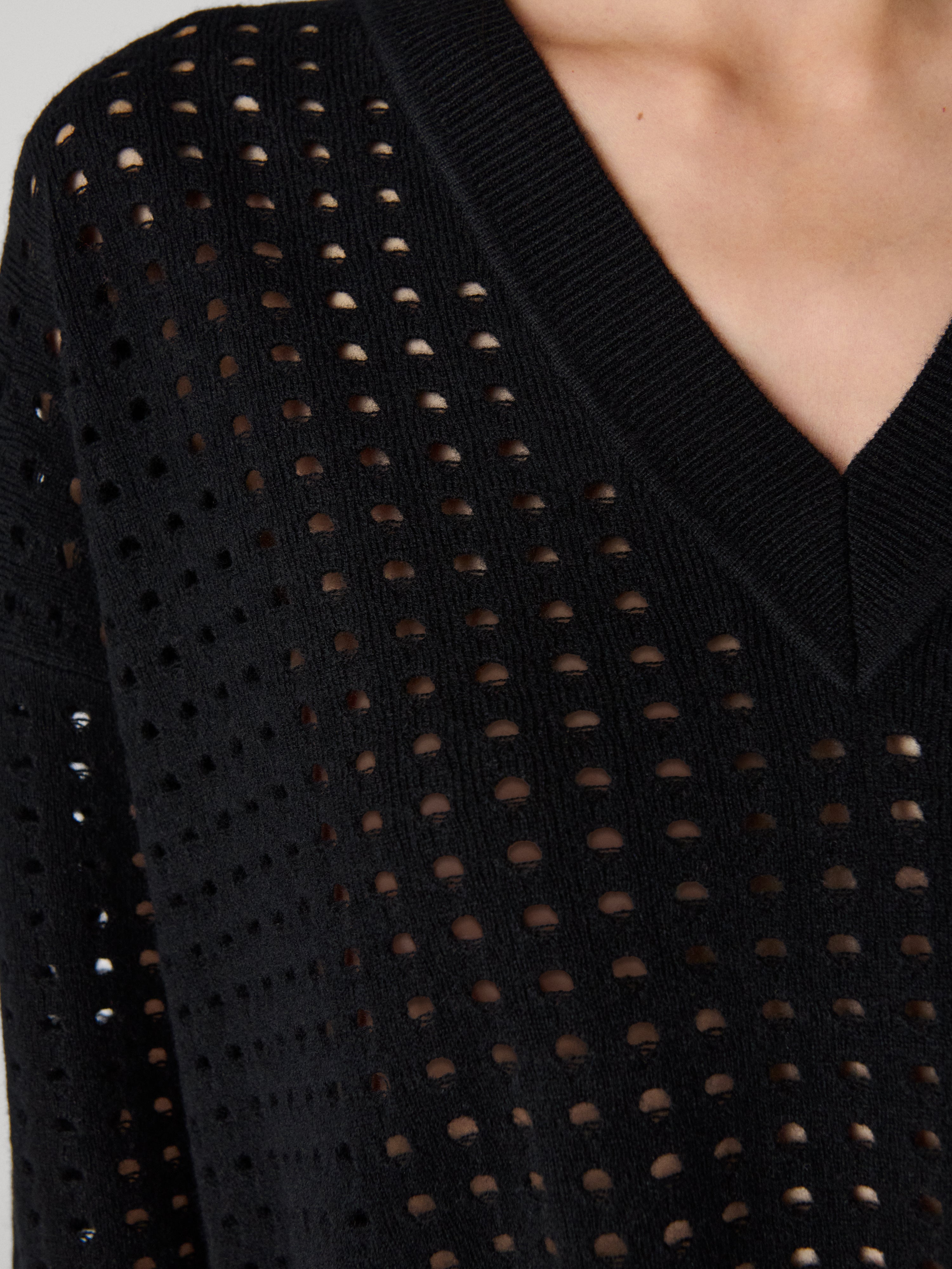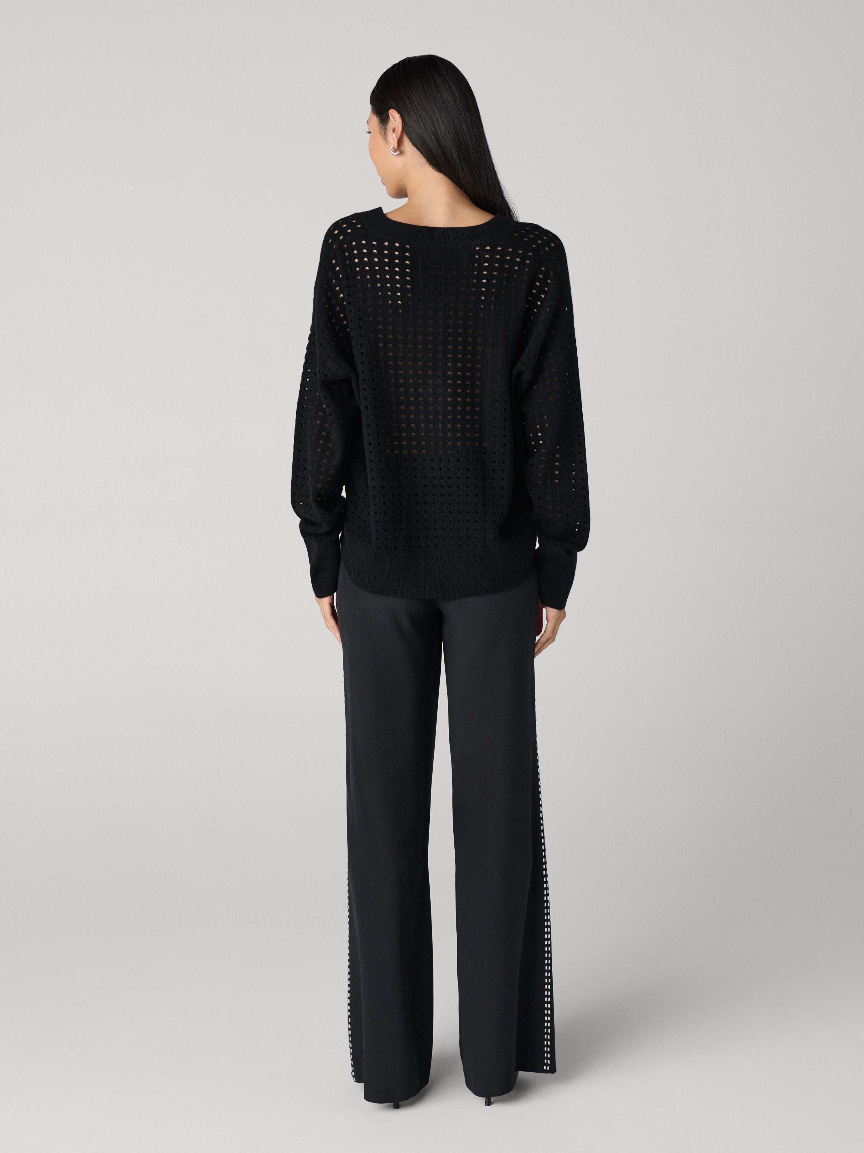 The Linda Top is an open-knit sweater in our signature wool-cashmere blend, versatile enough to layer or wear on its own.