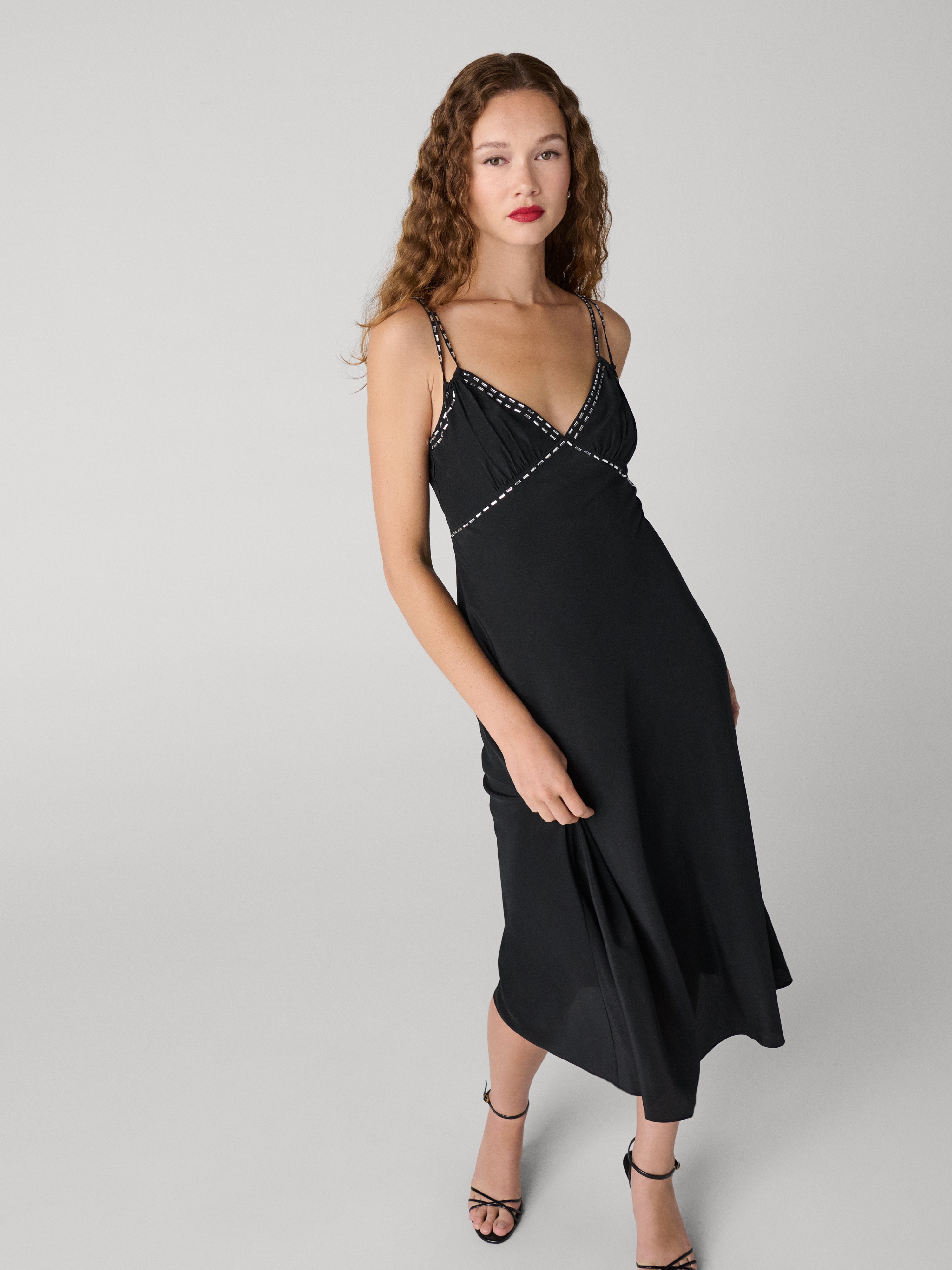 The elegant Vesper Duster makes a statement with its maxi length and shimmering glass bead detailing.