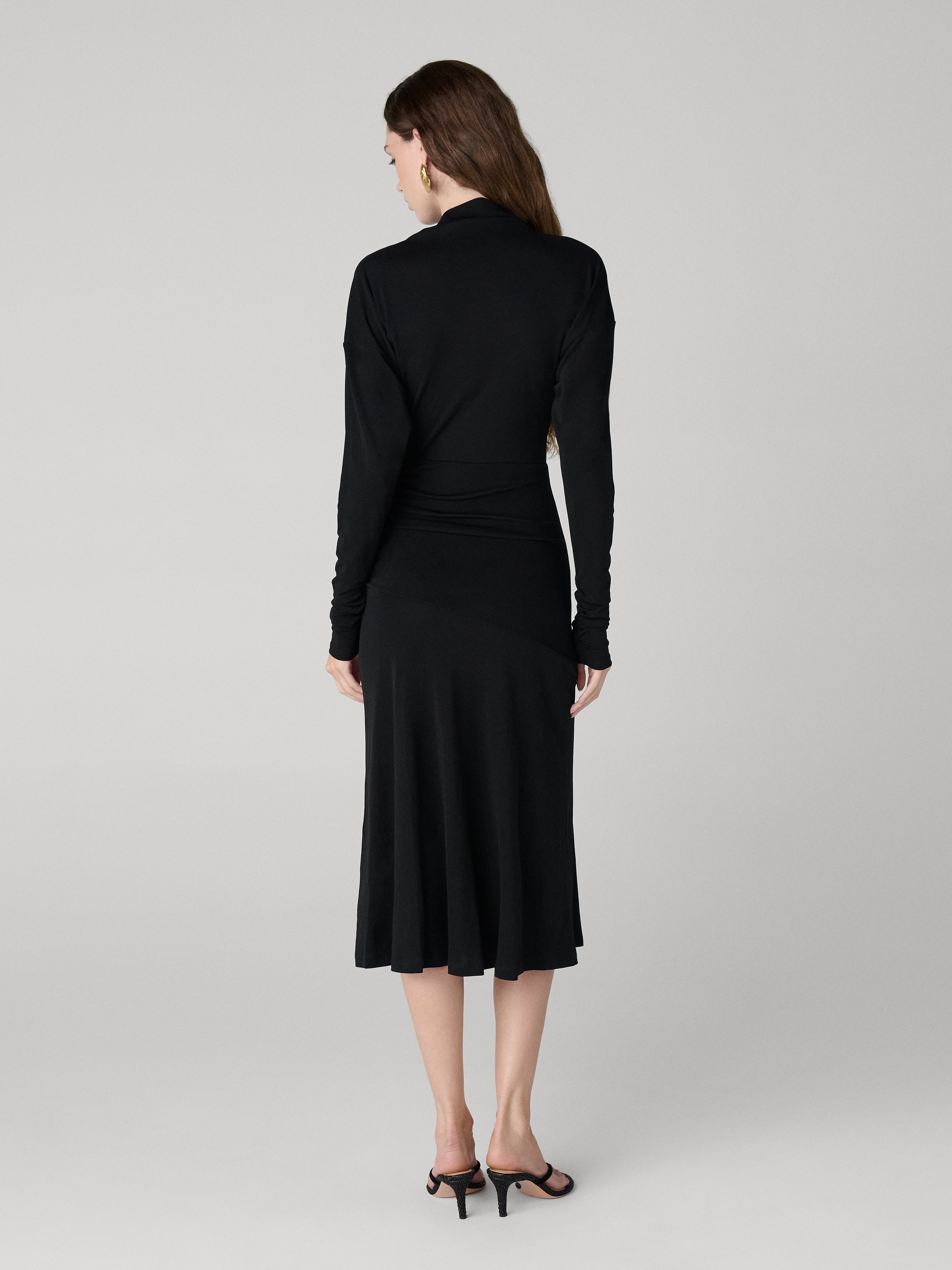 Our Alyce Dress, crafted from our modern jersey fabric, features a flattering gathered waist and an elegant silhouette.