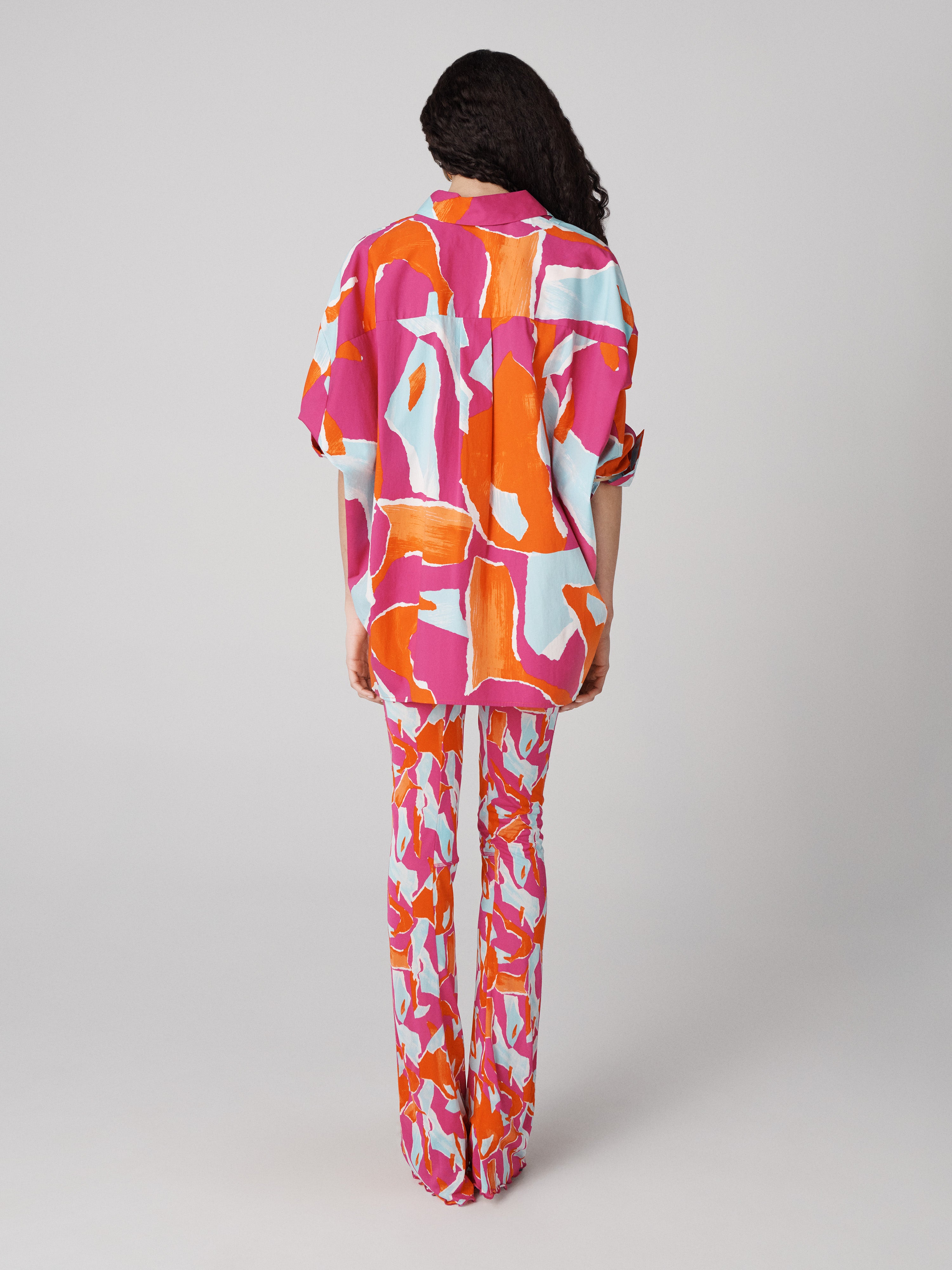 A classic shirt silhouette, the Laura Shirt is cut from a soft, stretchy cotton poplin with a high-low hem that gives it volume and shape.