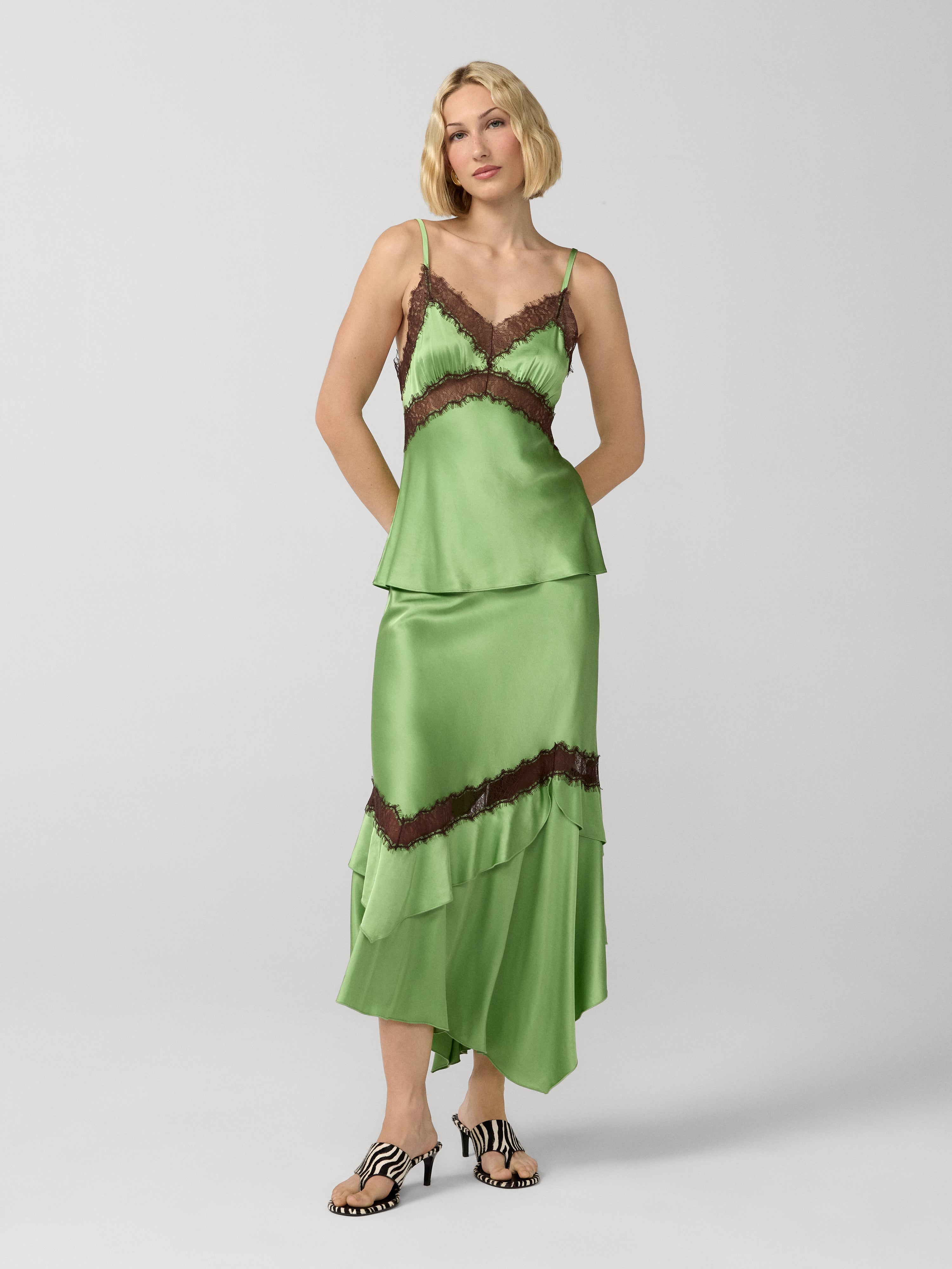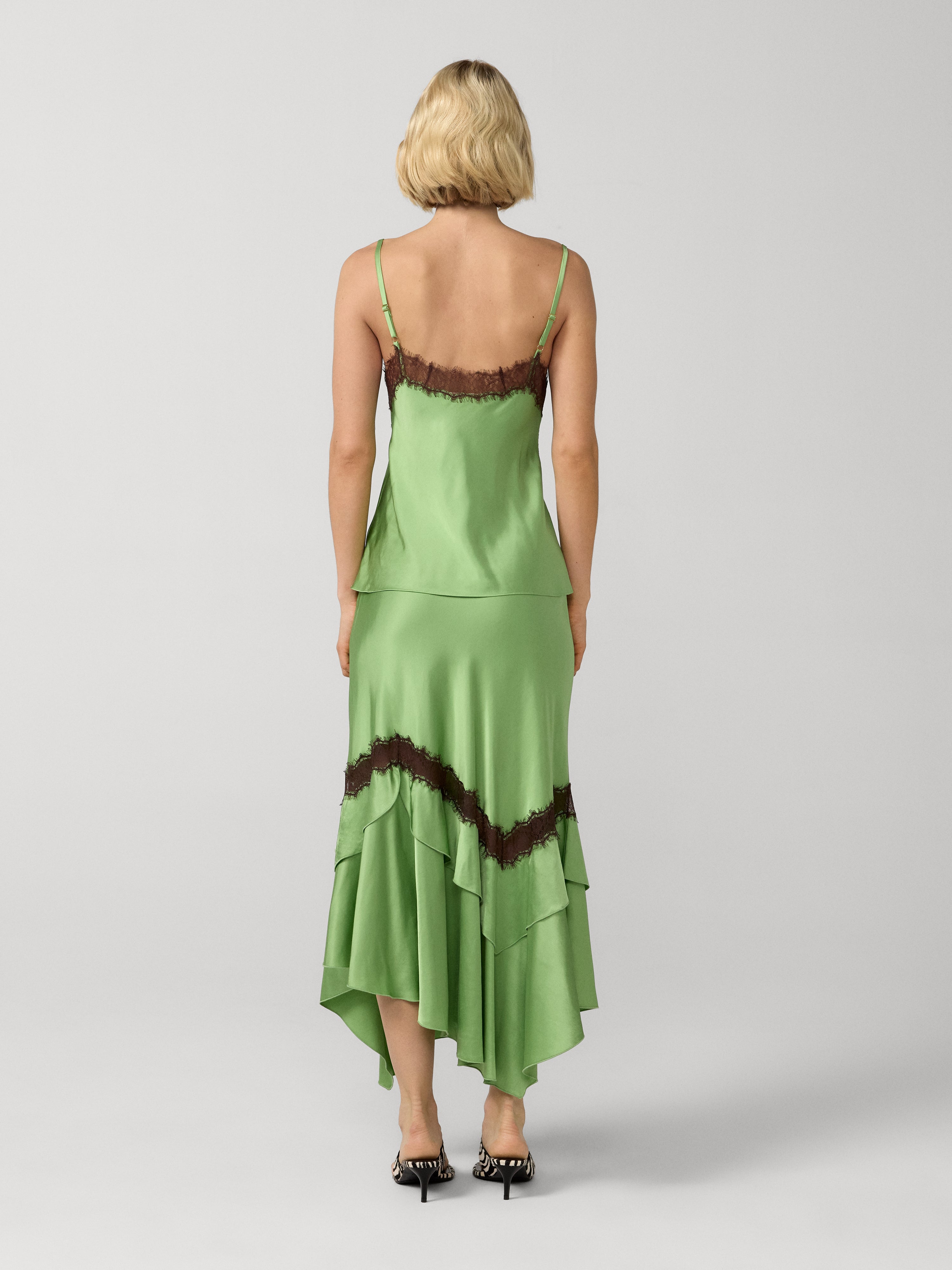 The Camille Cami is crafted from lustrous satin and finished with romantic lace details.