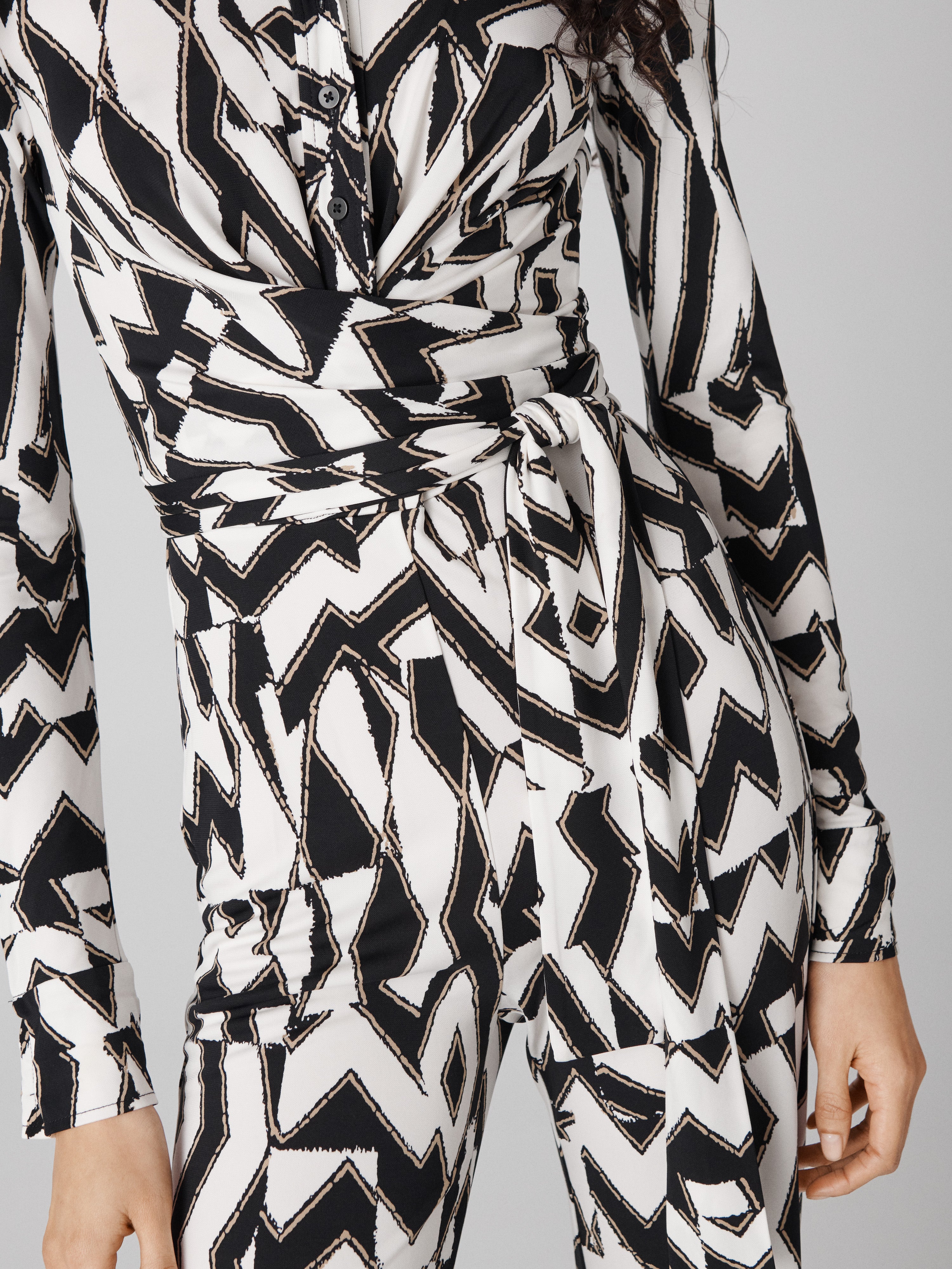 Blending matte jersey and cotton, the Arina midi dress balances structure with stretch in a wrap-style silhouette.