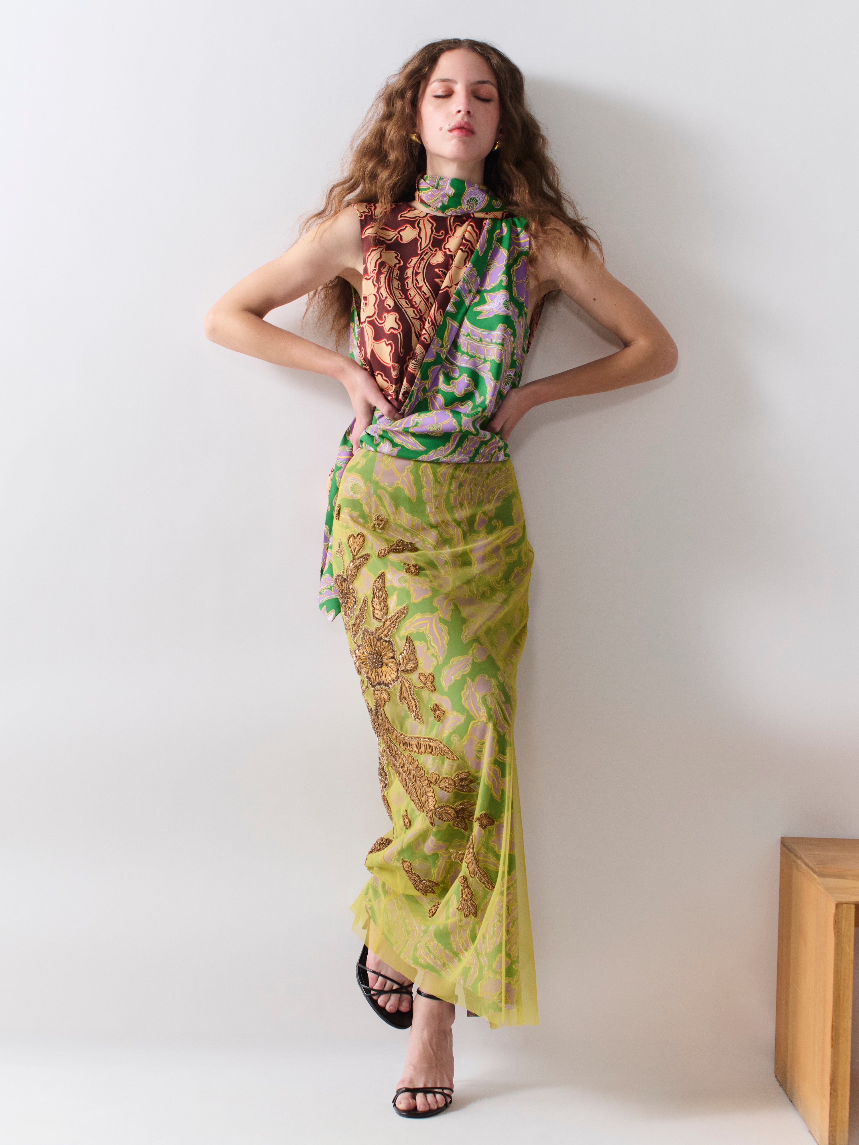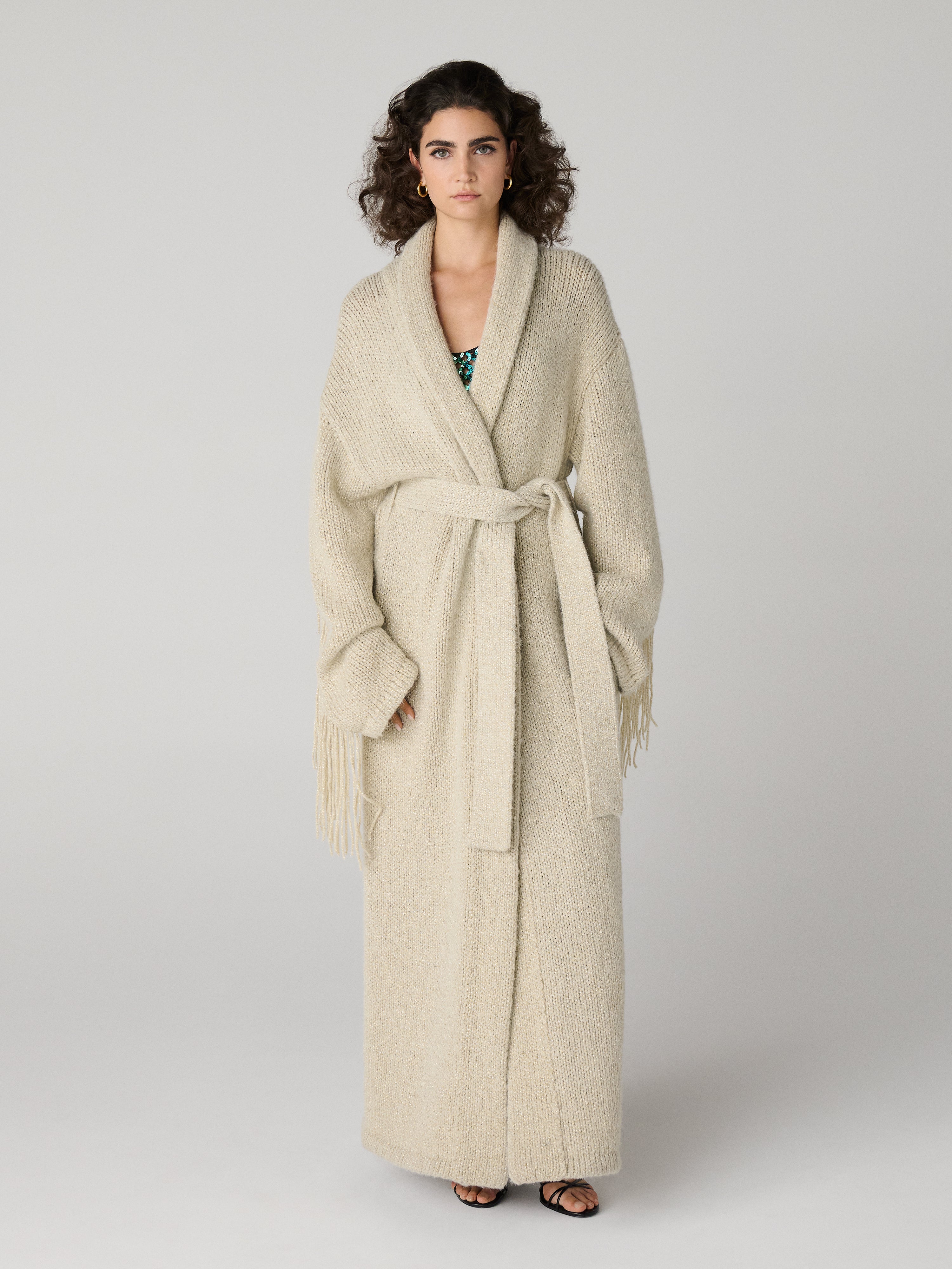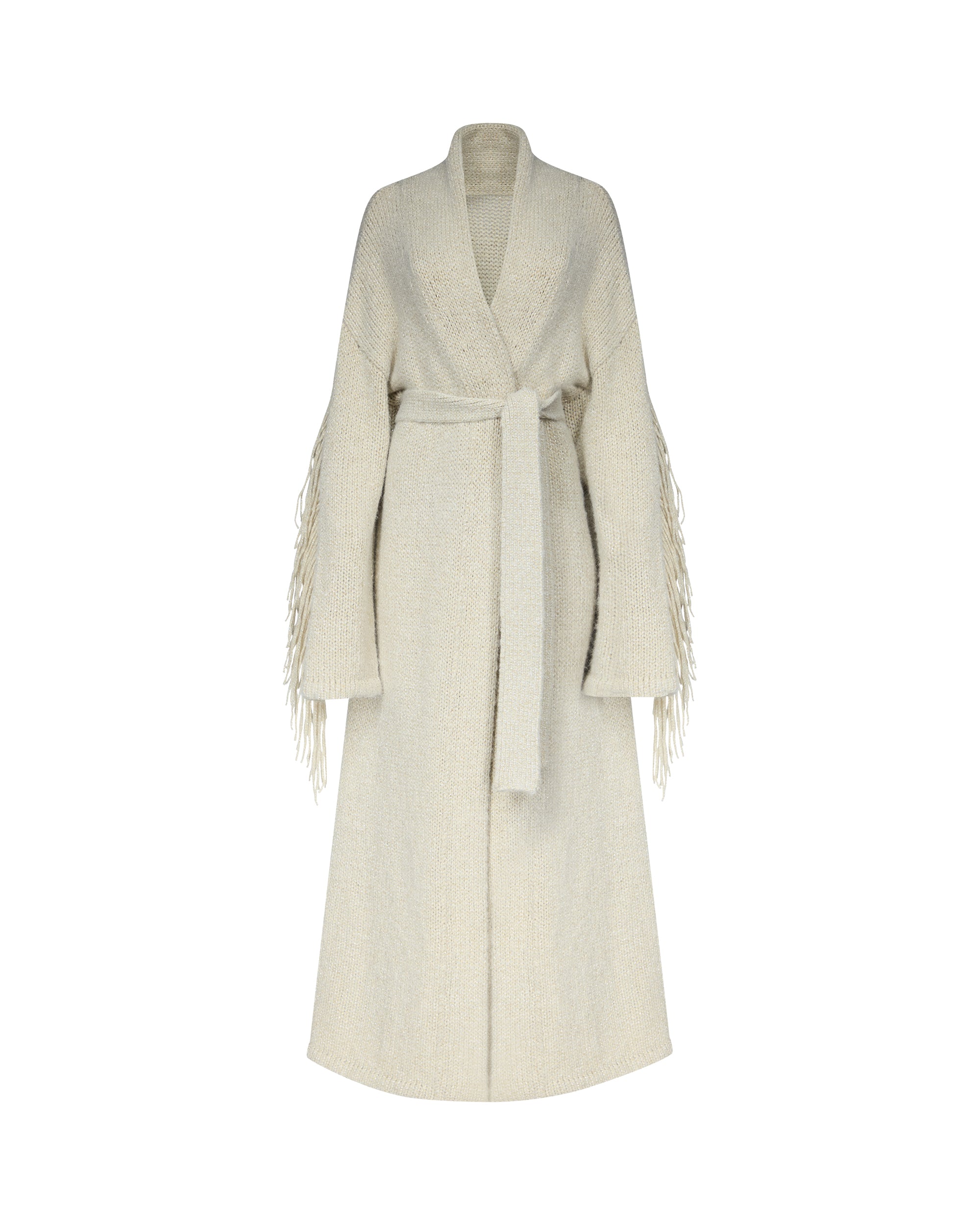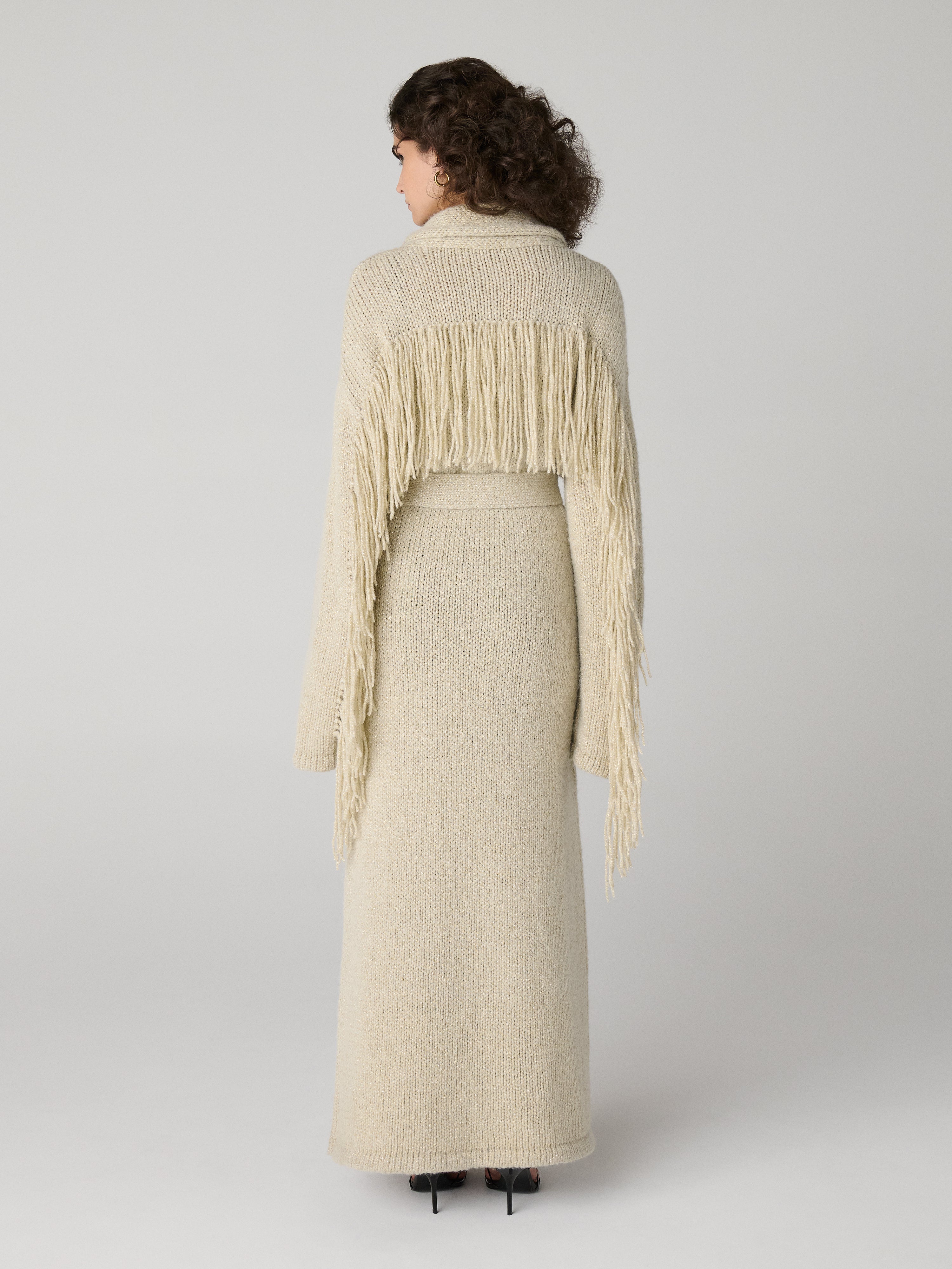 Designed in collaboration with Henry Zankov, the Cornelia Sweater with cascading fringe wraps the body with an oversized fit.