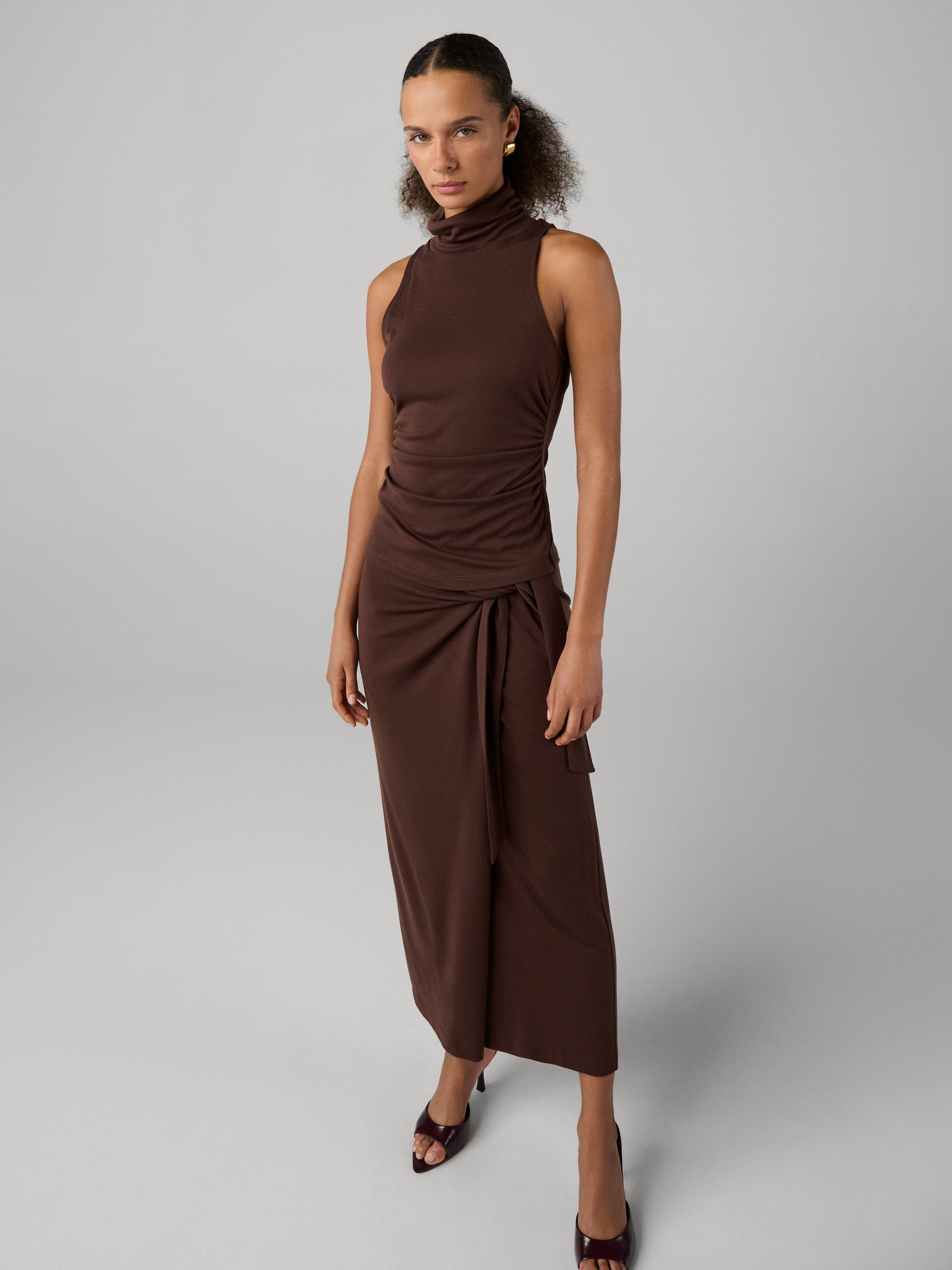 The Danielle Knit Wrap Dress is crafted from a soft, fluid knit with a graceful drape, defined by an elegantly cinched waist.
