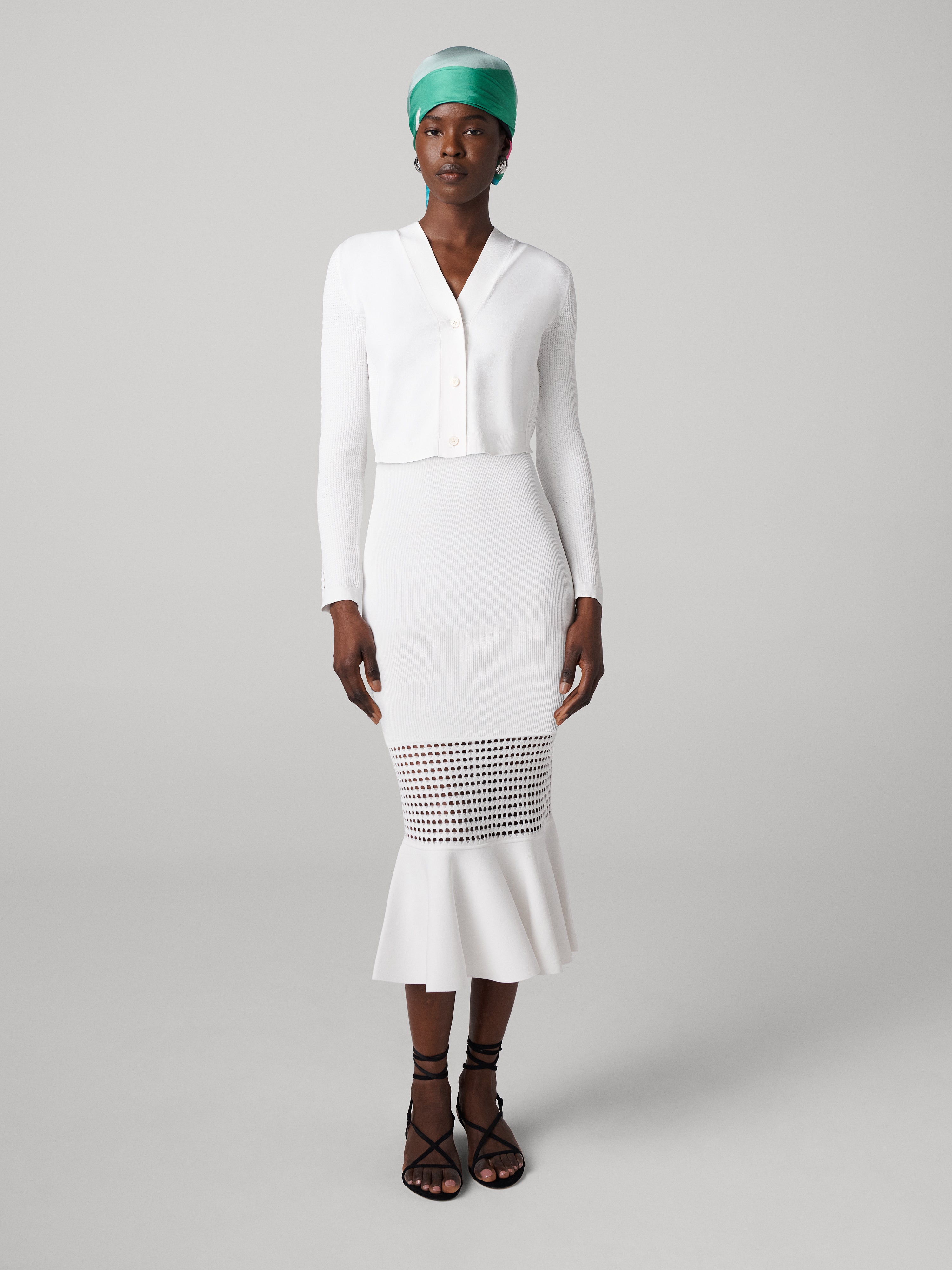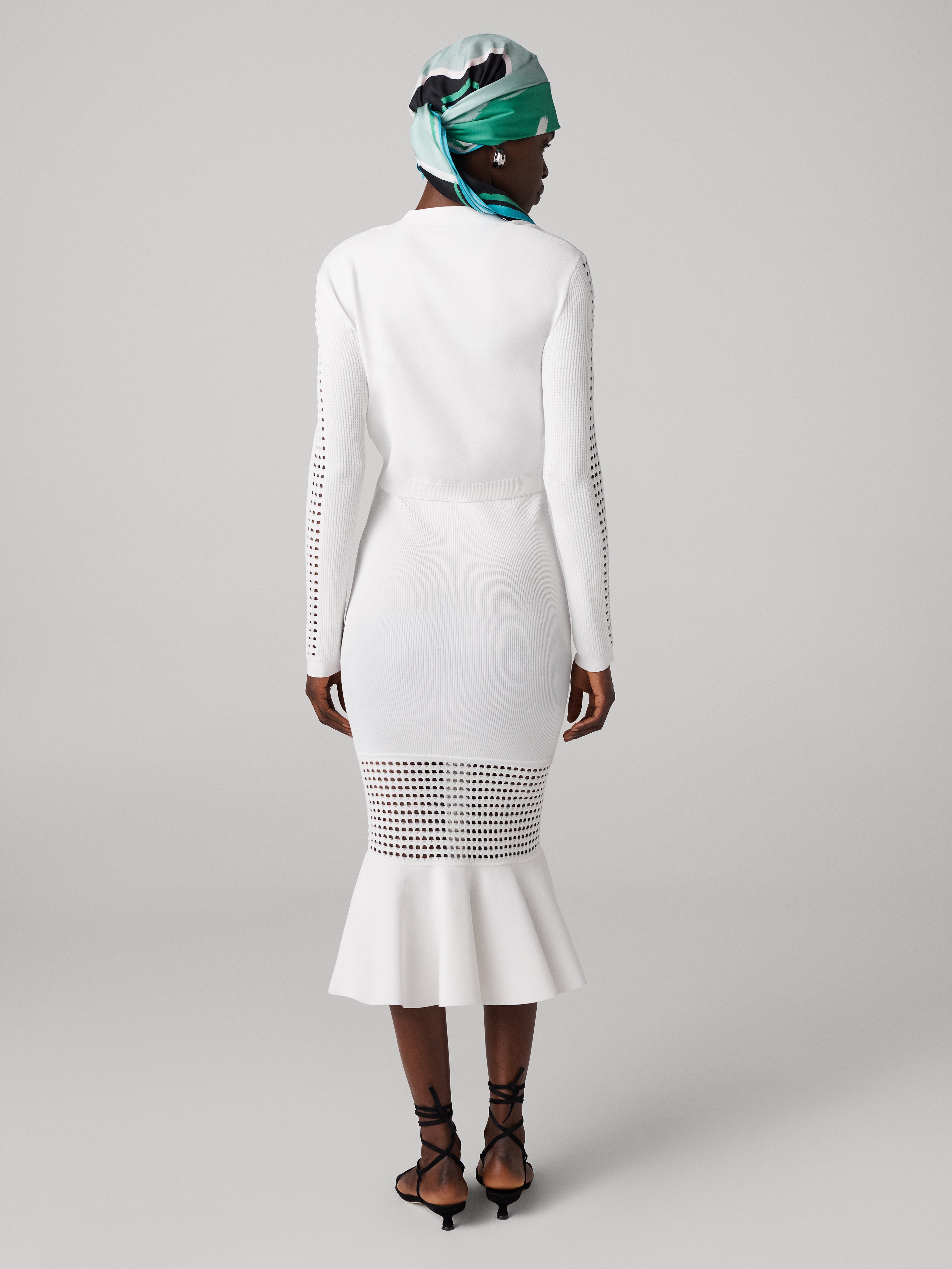 An open-knit piece, the Georgia Skirt is a chic, stretchy, and sheer piece.