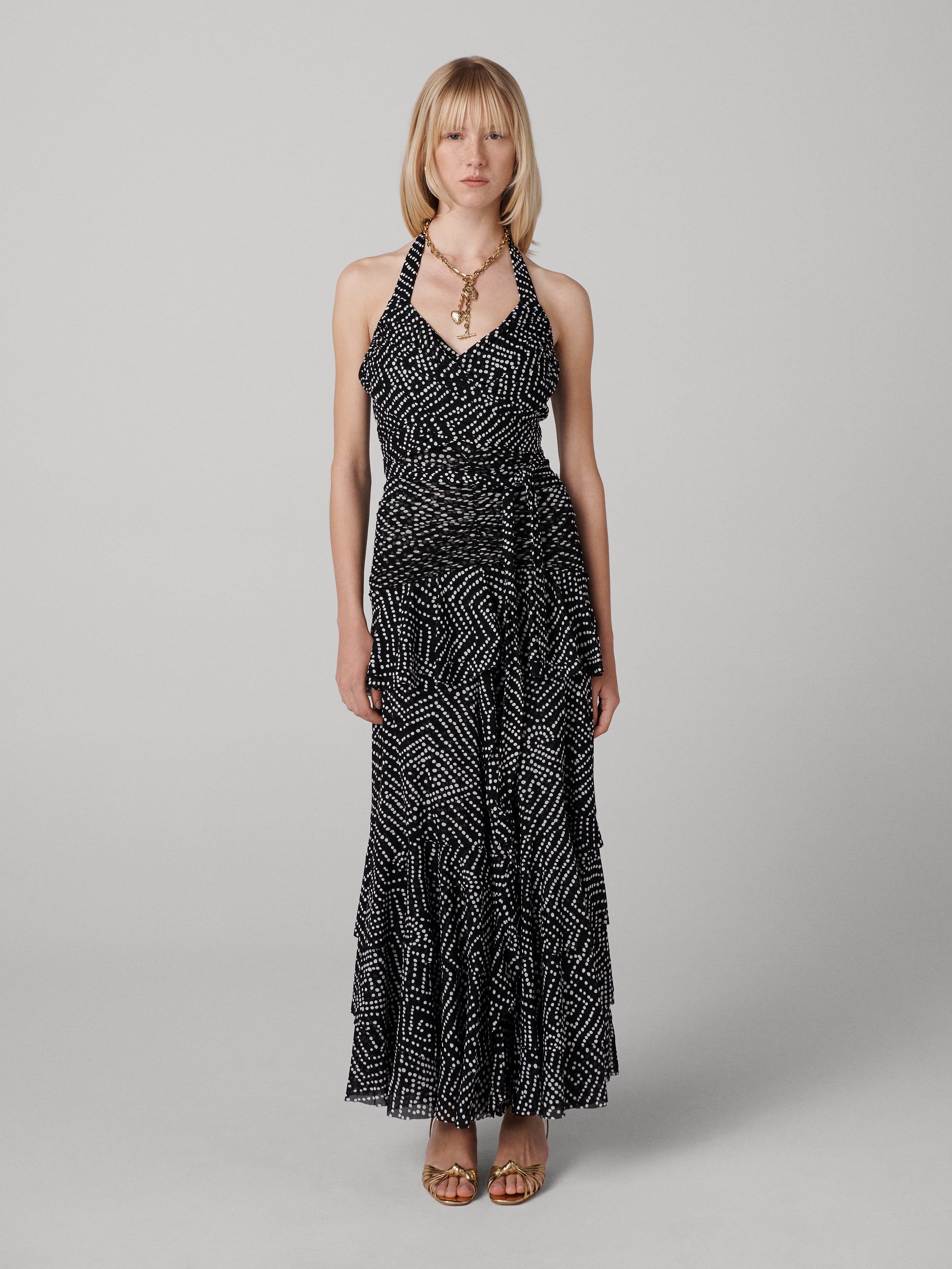 The Heather Wrap Dress combines a matte jersey bodice with a cotton poplin skirt, creating a cinched and structured fit.