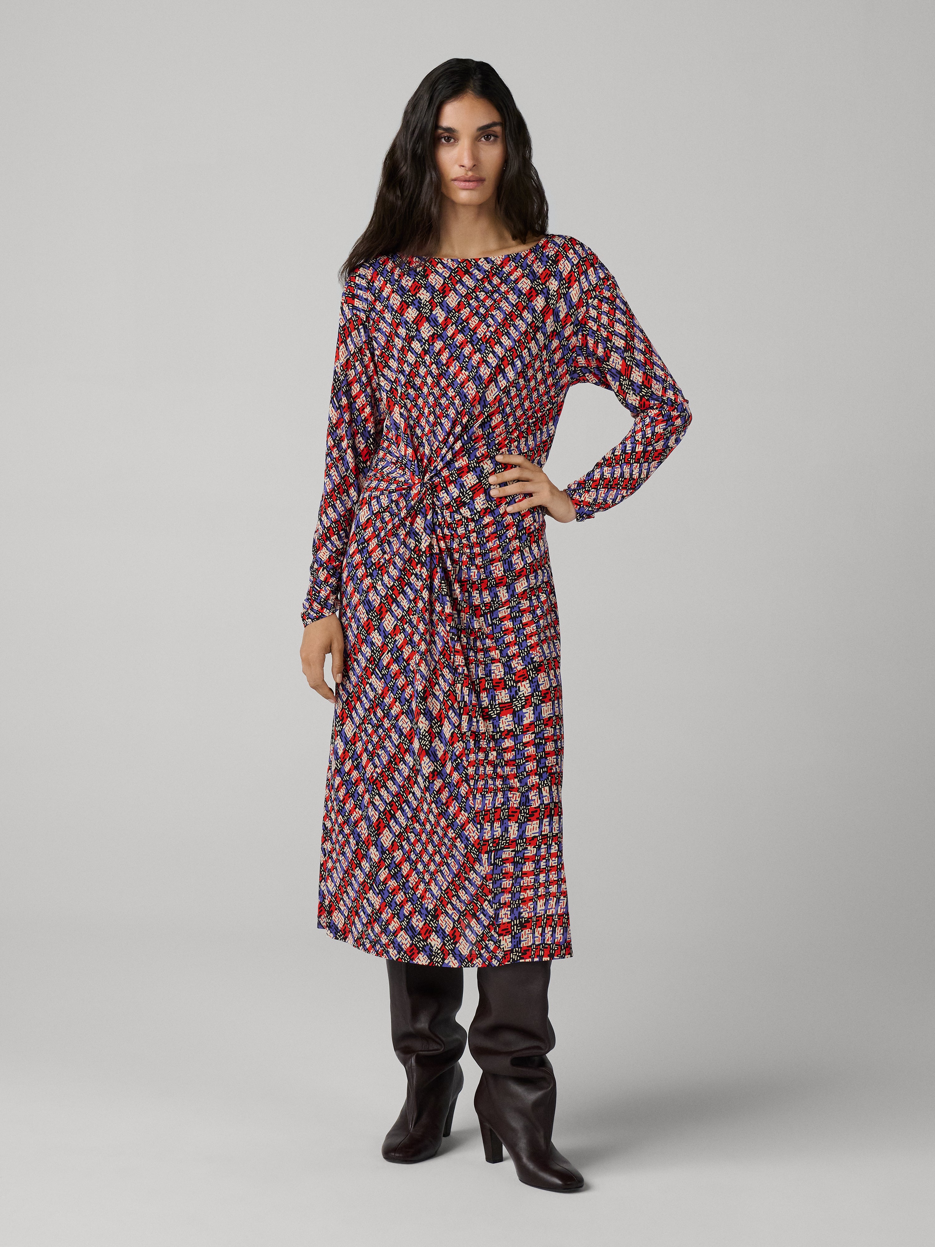 Introducing the Paisley Long Sleeve Wrap Dress in our signature matte jersey, showcasing DVF’s effortless drape.