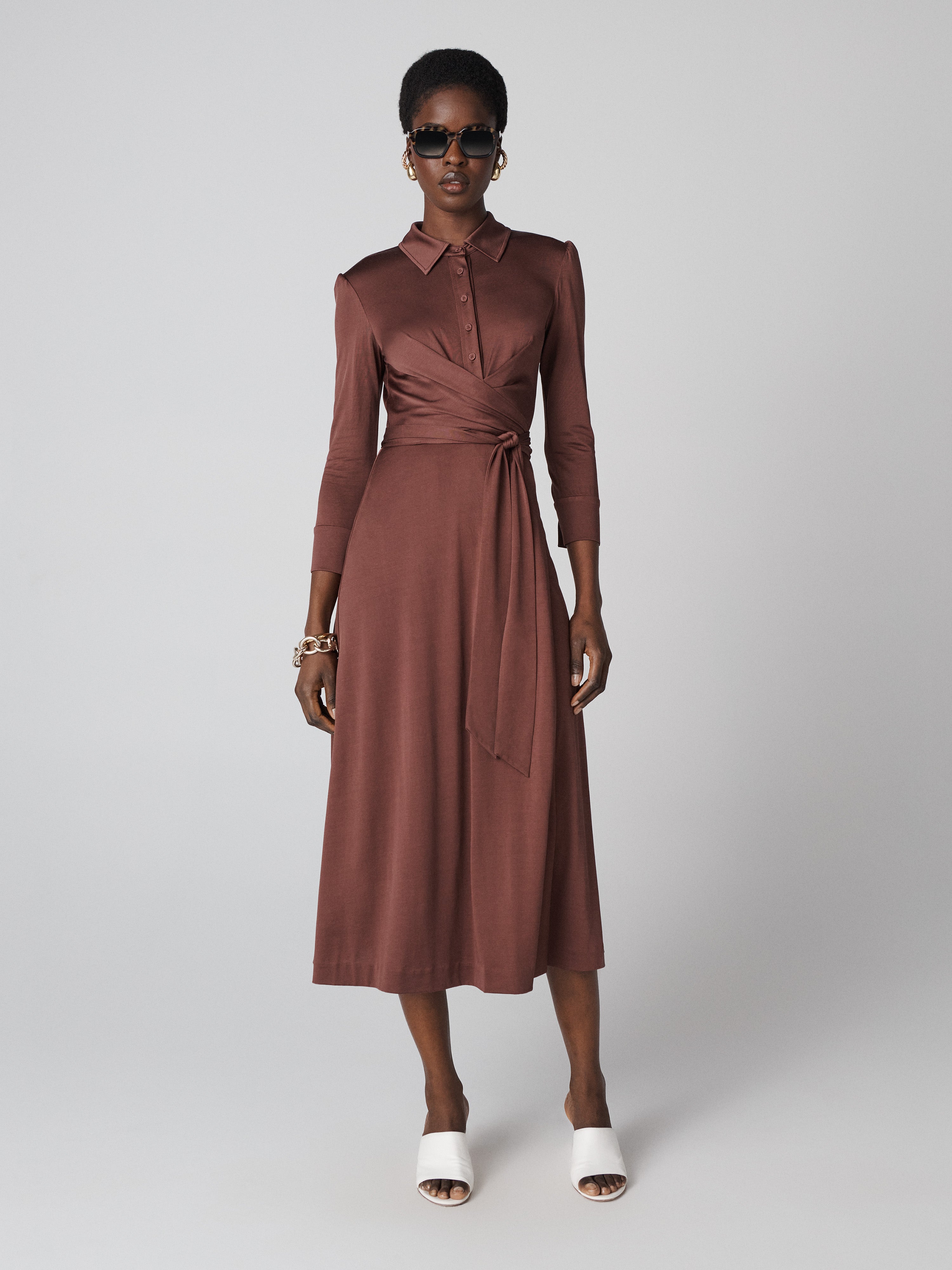 With its cozy drape and delicate gold shimmer, the Serina Sweater adds a touch of shine to cooler days.