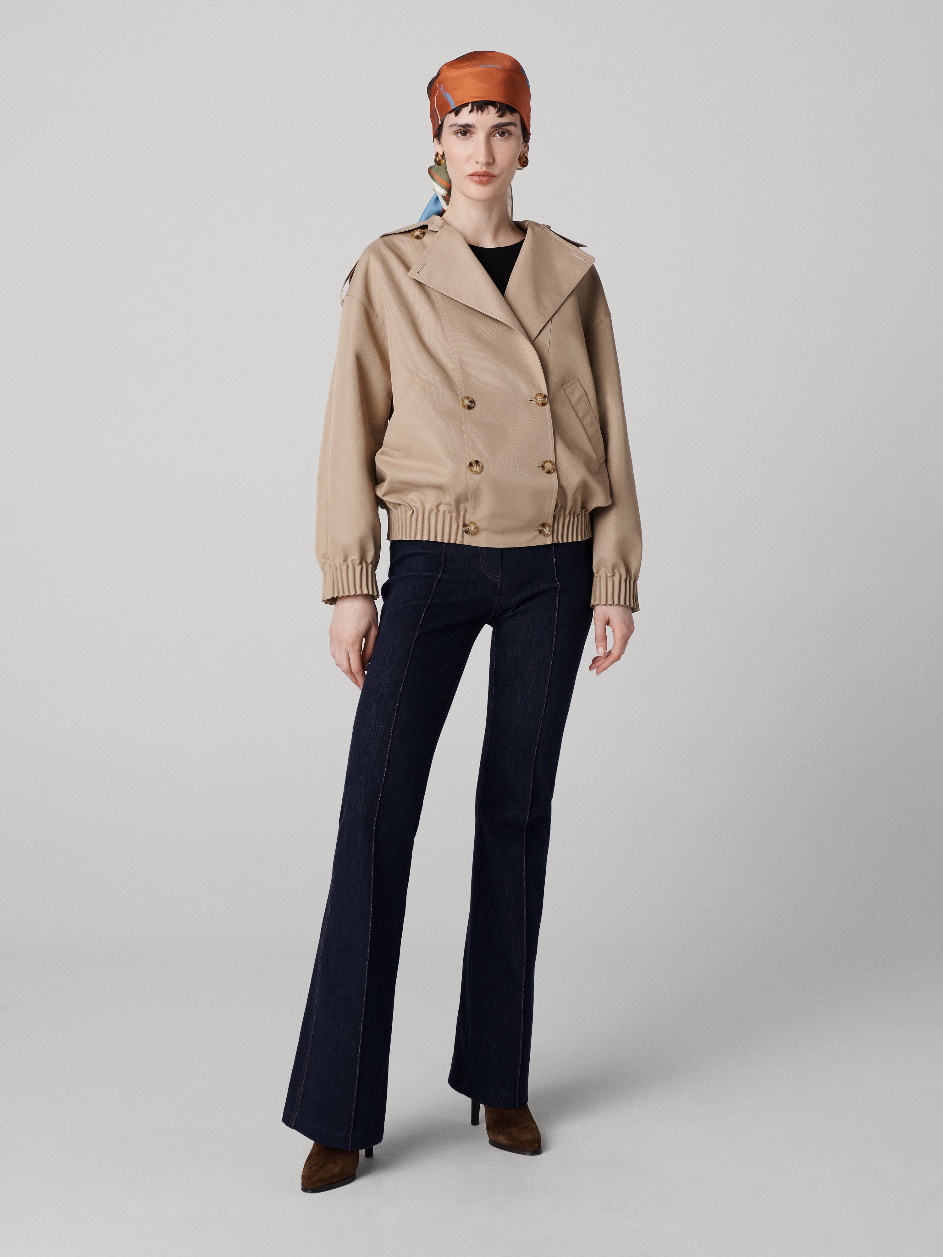 The Naomi Jacket redefines lightweight layering crafted from cotton twill with a structured, flirty, and sculpted silhouette.