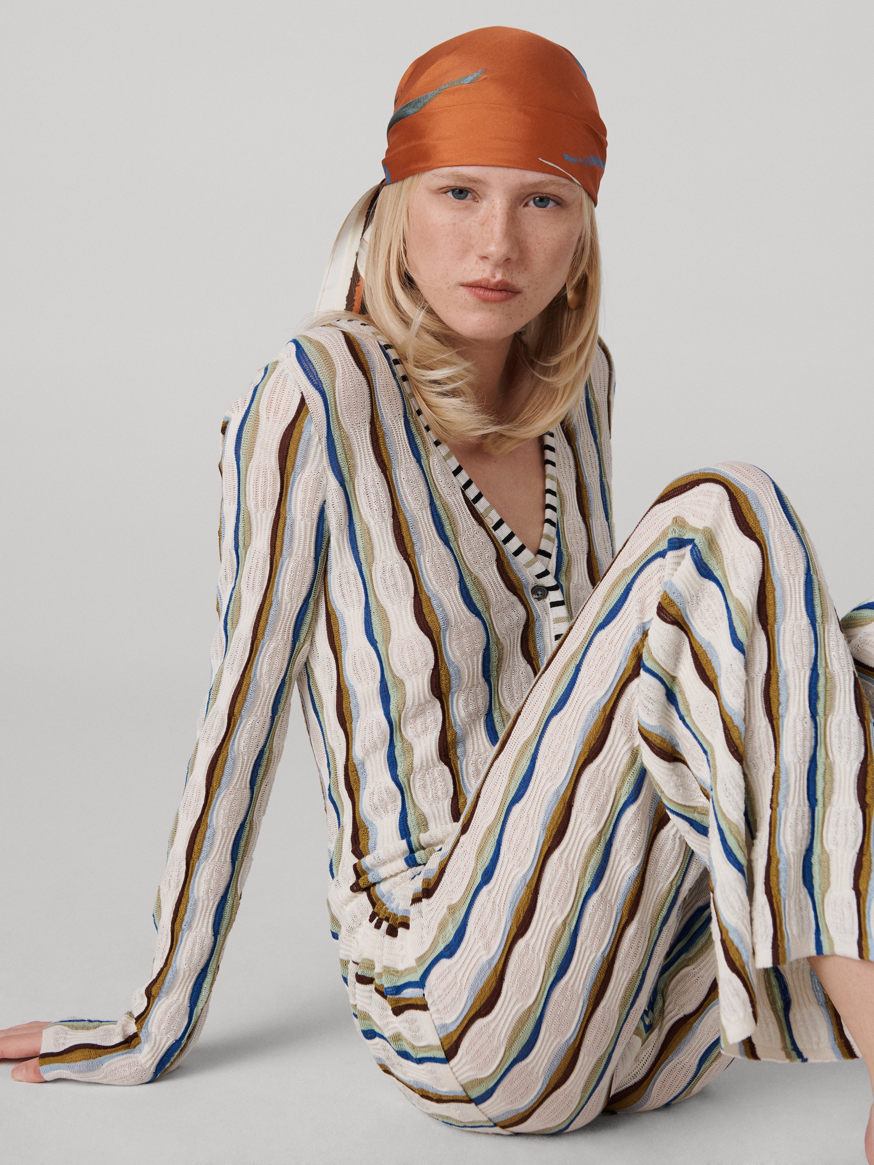 Crafted from a silk-cotton blend, the Scarlett Pants are an effortless slip-on-and-go style with a textured sweater feel.