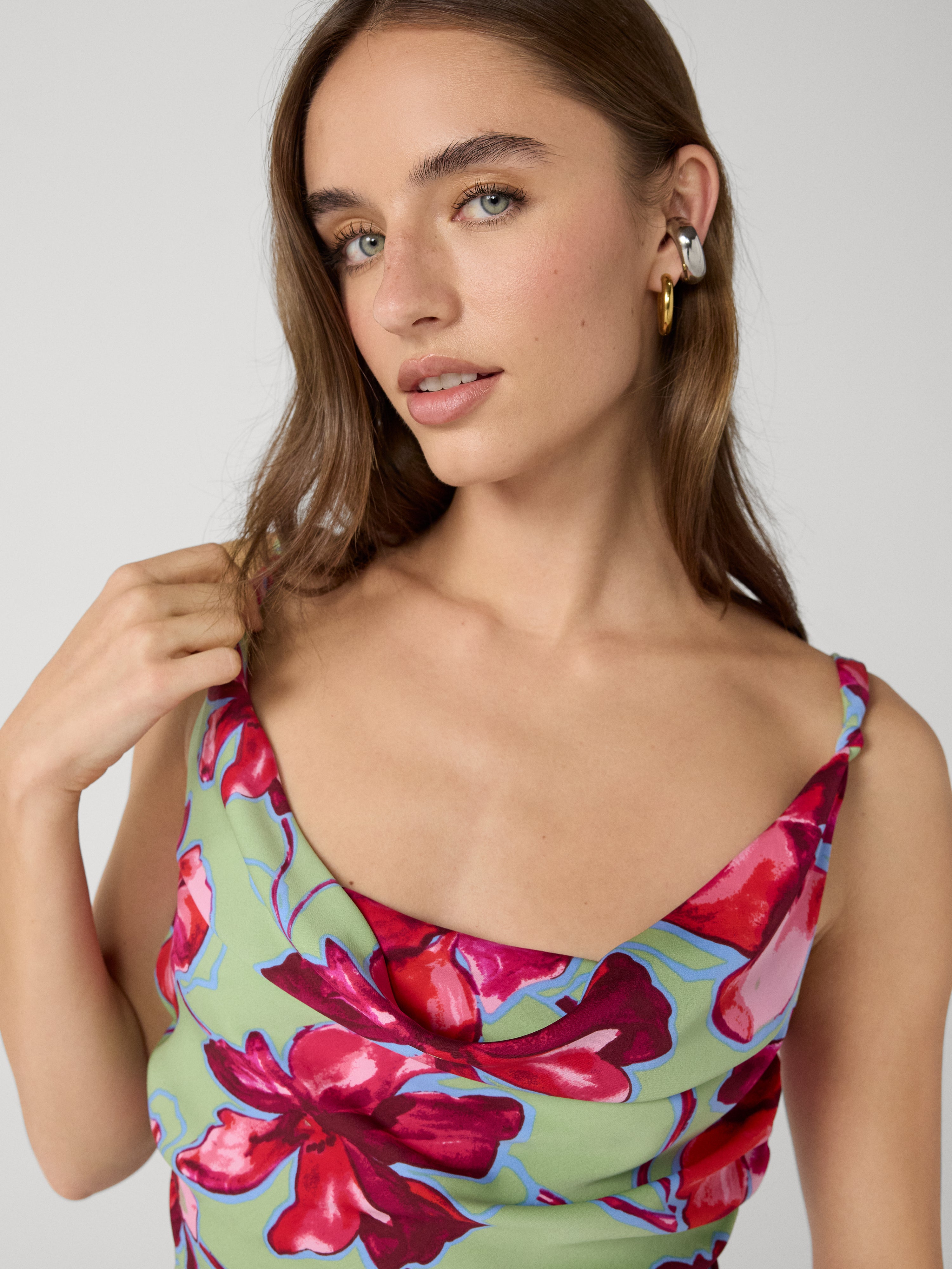 Our Delaney Dress features a flattering slip silhouette in a romantic floral print.