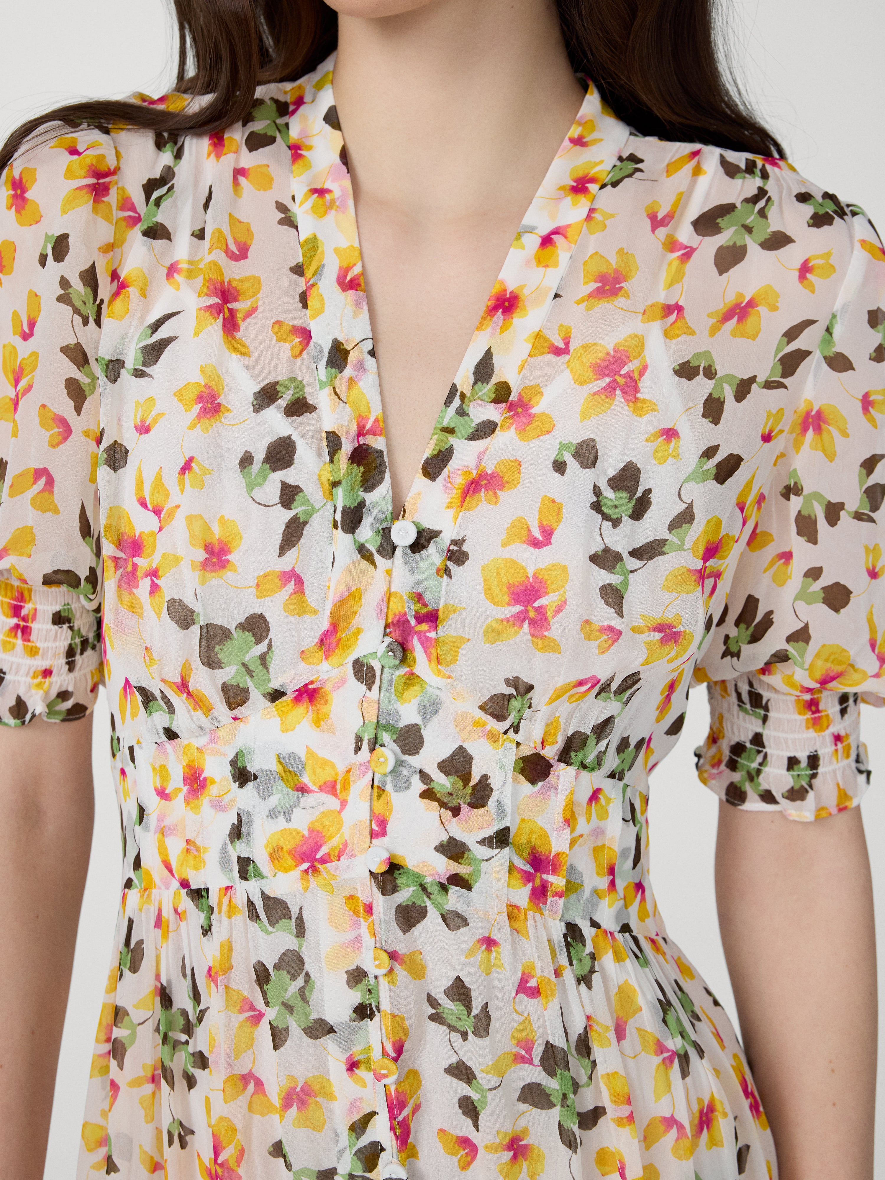 - Smocking along sleeve cuffs
