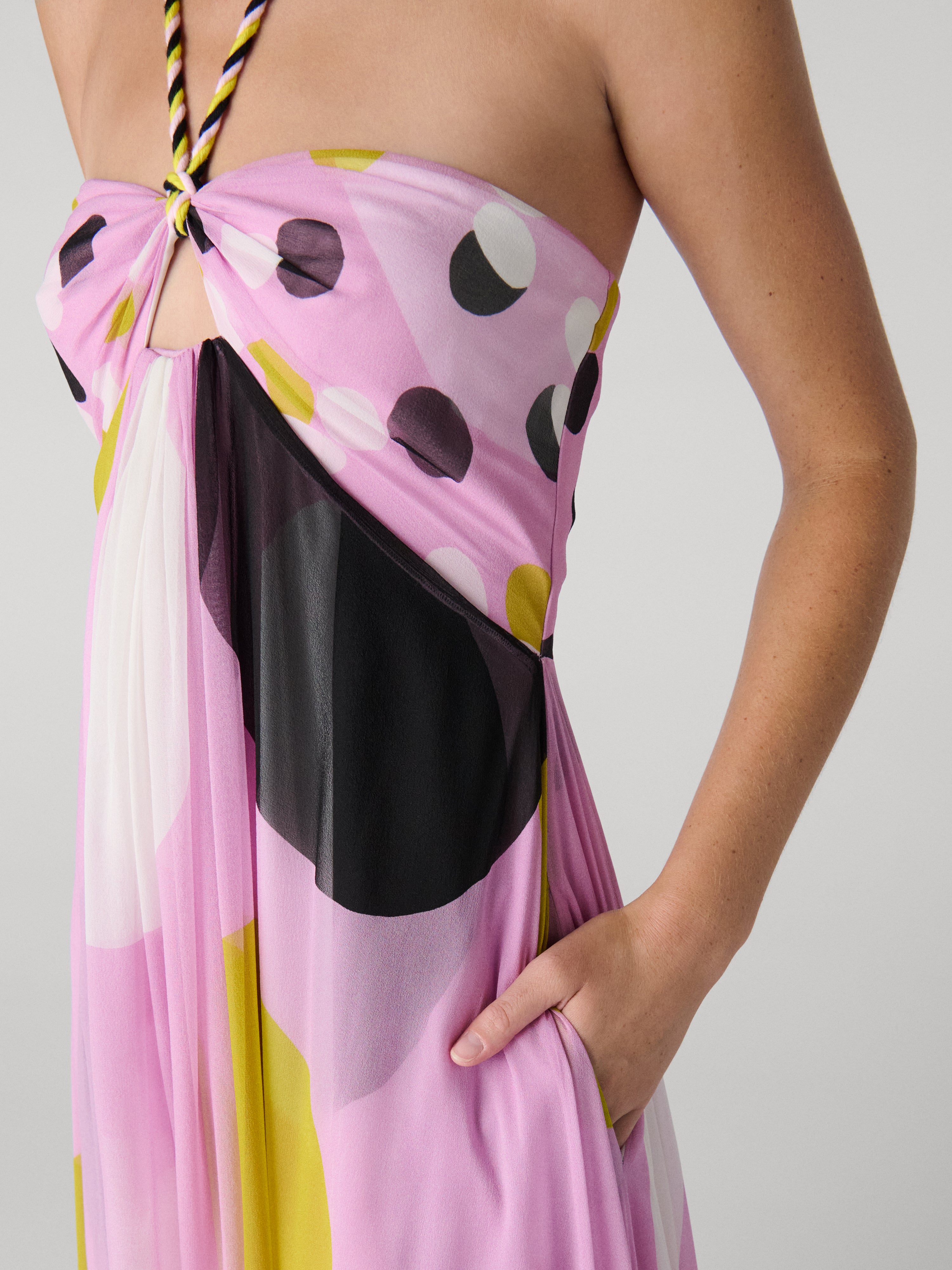 - Halter tie neckline