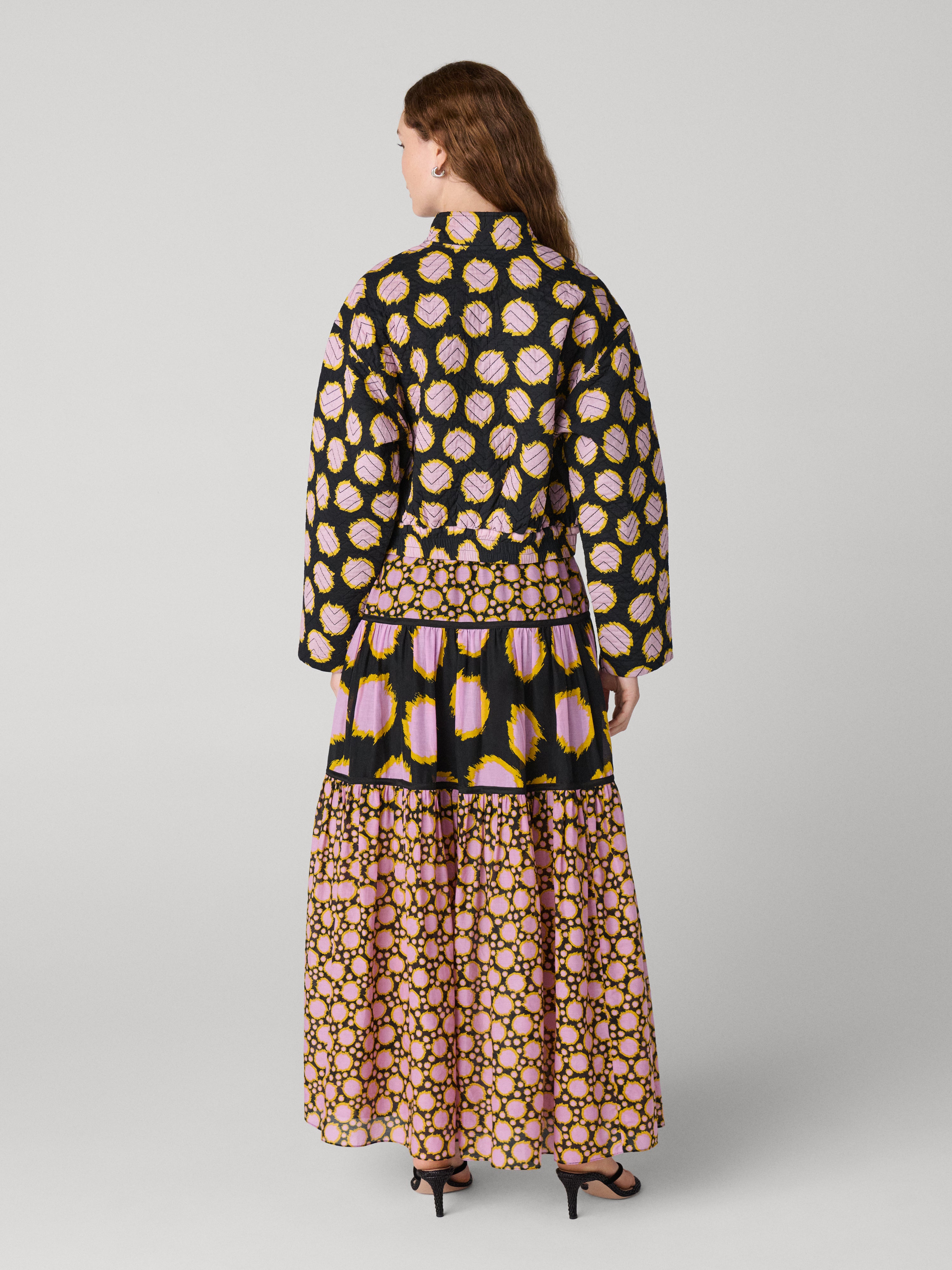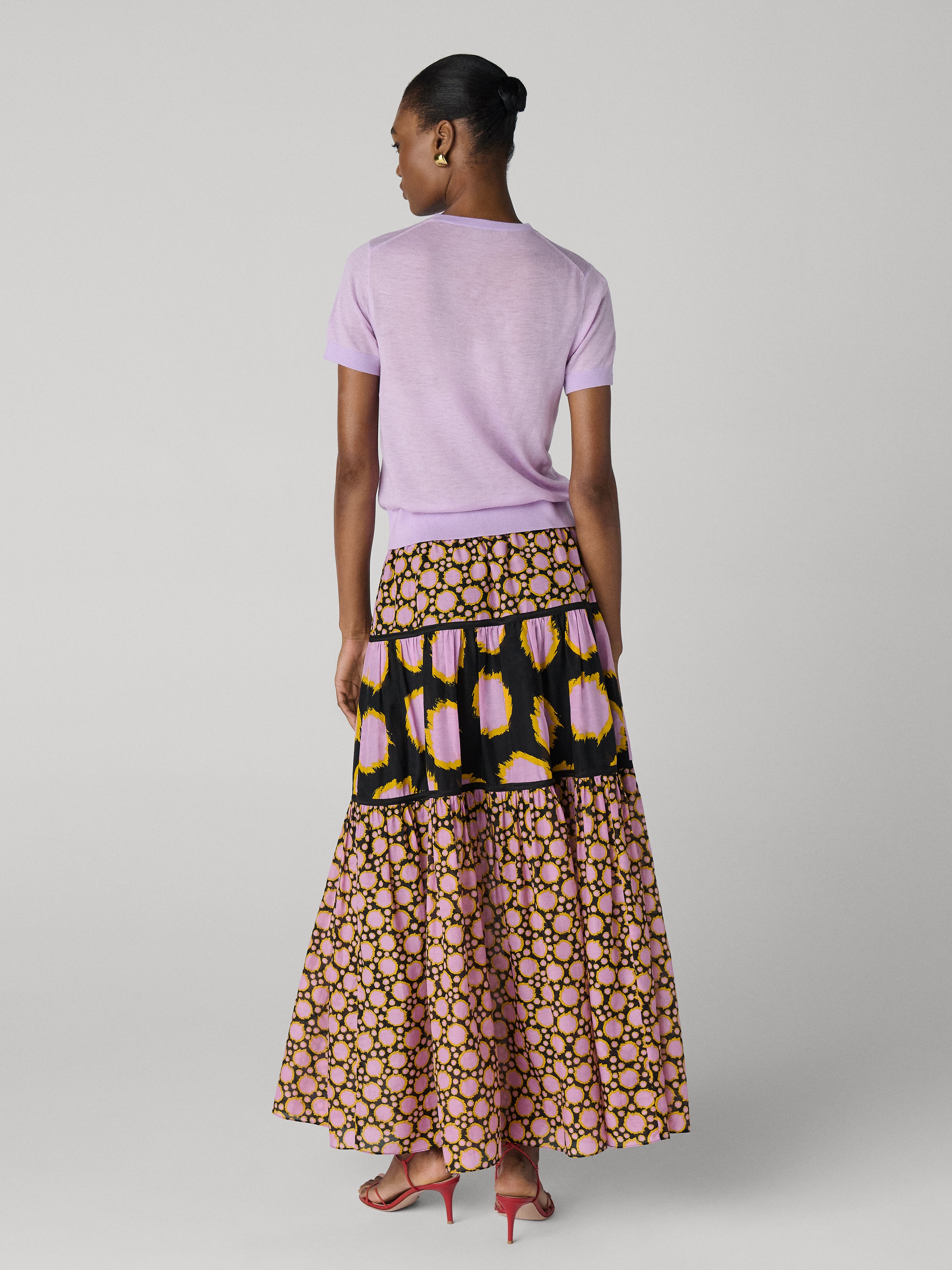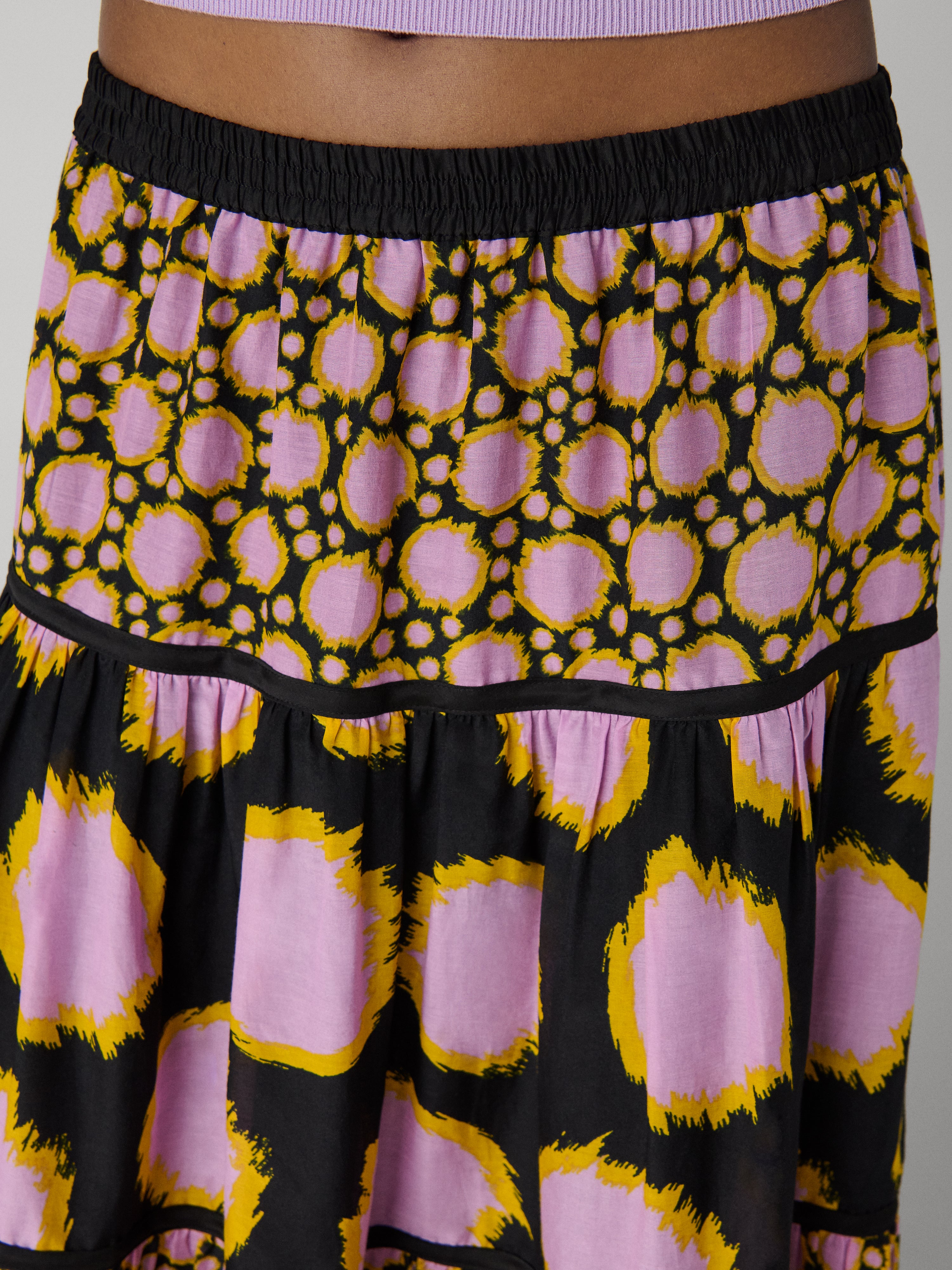 Crafted from a silk-cotton blend, the Shiloh Skirt features contrasting prints and has a light and luxurious drape.