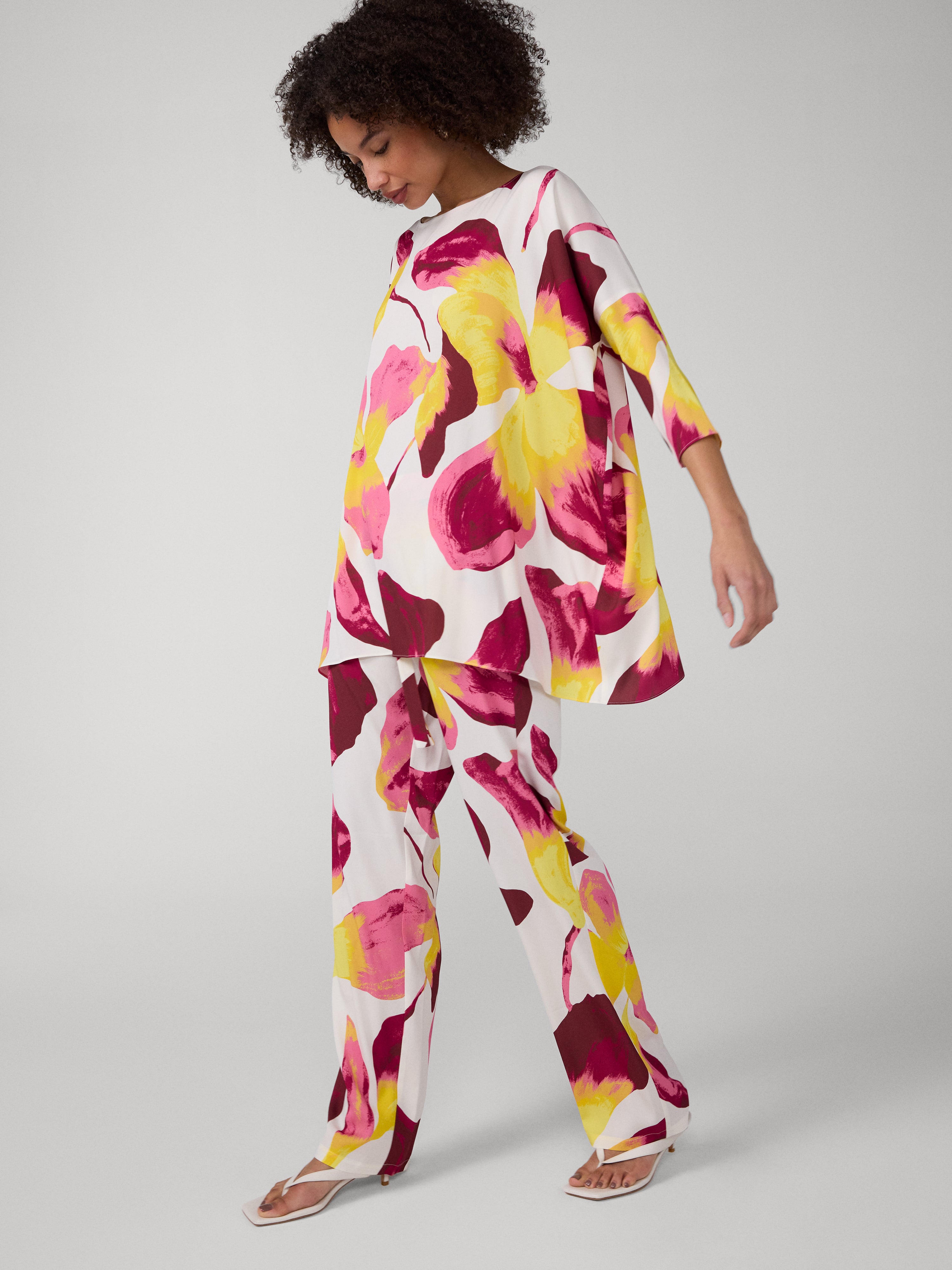 The Tamsin Dress is a stunning occasion maxi featuring a romantic orchid print and a dramatic open back.