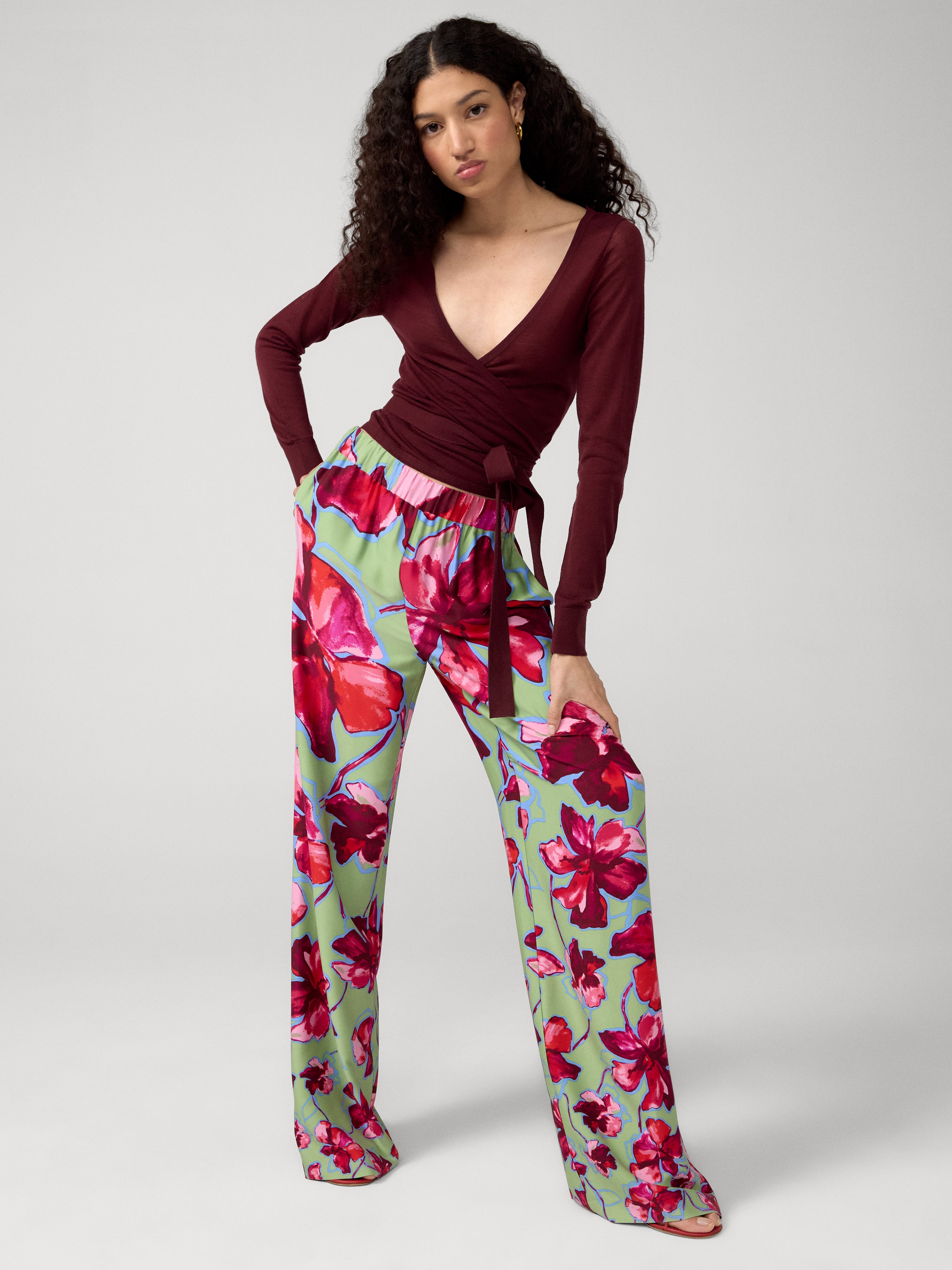 The Verick Pants are elevated printed pants with an ultra flattering stretch waistband and a wide leg silhouette.